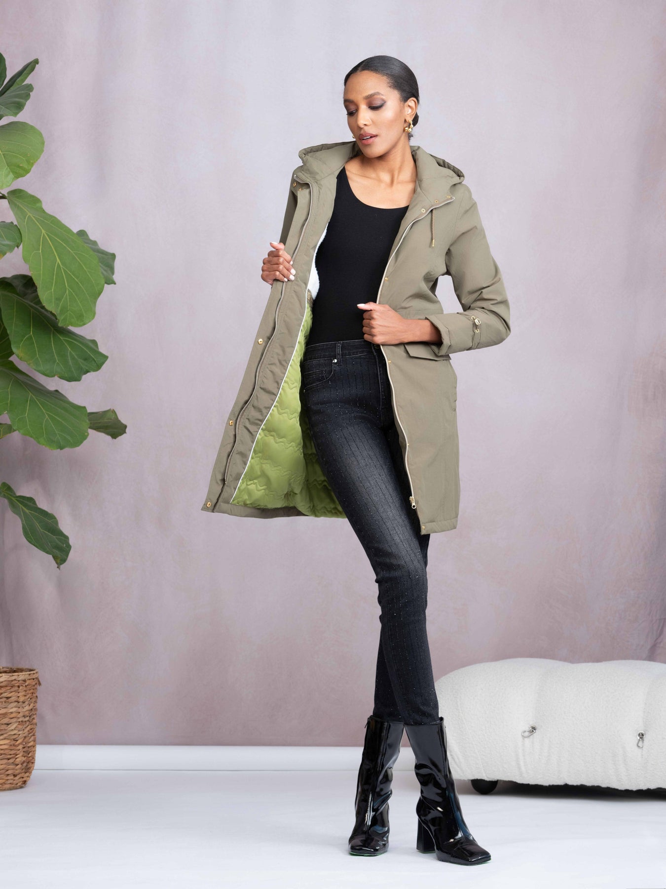 Stay stylish and protected in this hooded long rain coat, designed with a sleek silhouette and functional details. Featuring a snap-front and zip closure, adjustable waist drawstring, and roomy flap pockets, it offers both practicality and modern style. The water-resistant finish keeps you dry, while the versatile design makes it perfect for city commutes or weekend getaways. Available in multiple colors to suit your look.