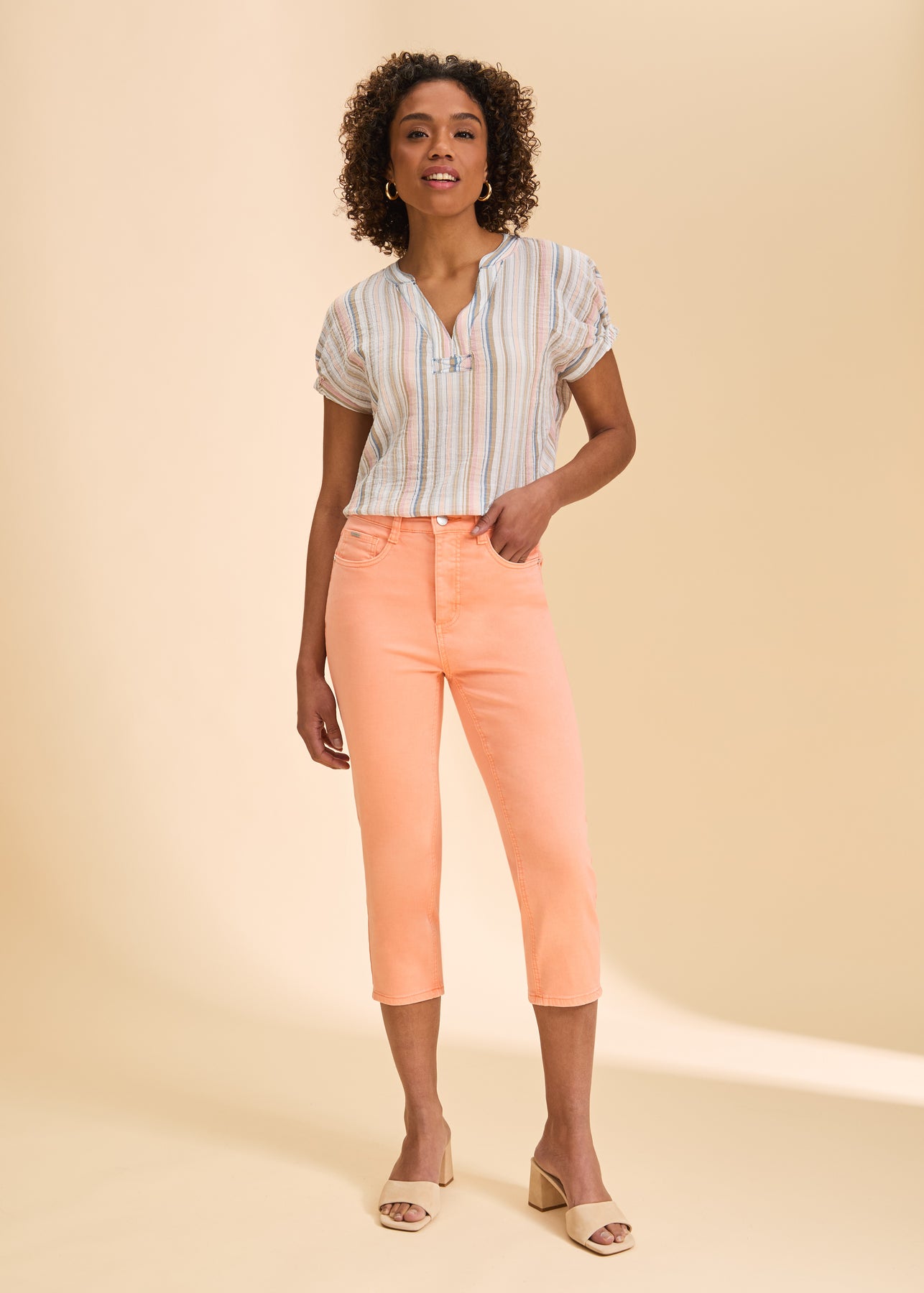 Suzanne Capri jeans deliver comfort and style in one effortless package. The mid-rise stretch denim flatters your figure while moving with you through warm days. Classic five-pocket design and a crisp capri length make them endlessly versatile—pair with anything from casual tees to flowing blouses. Perfect for sunny outings and laid-back weekends.