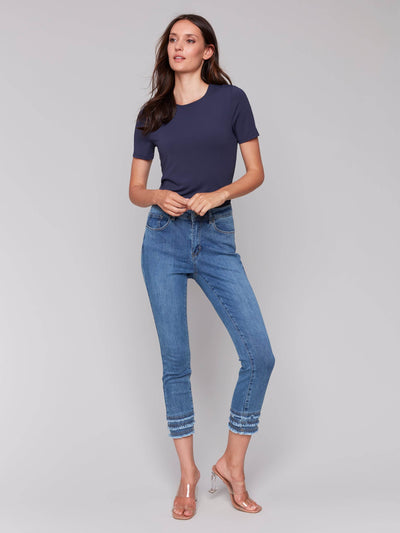 Frayed Hem Cropped Denim Pants - Dream Pants
