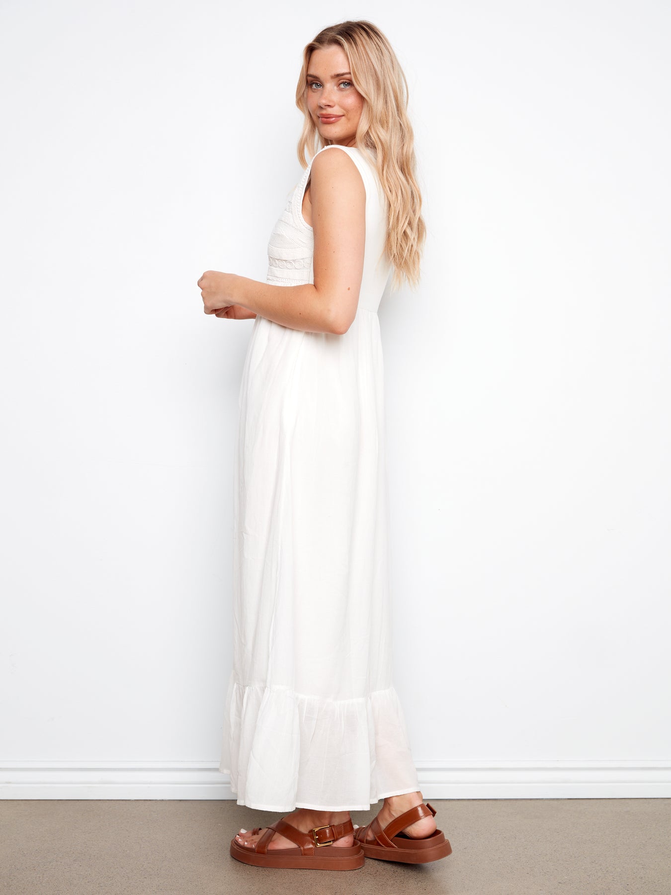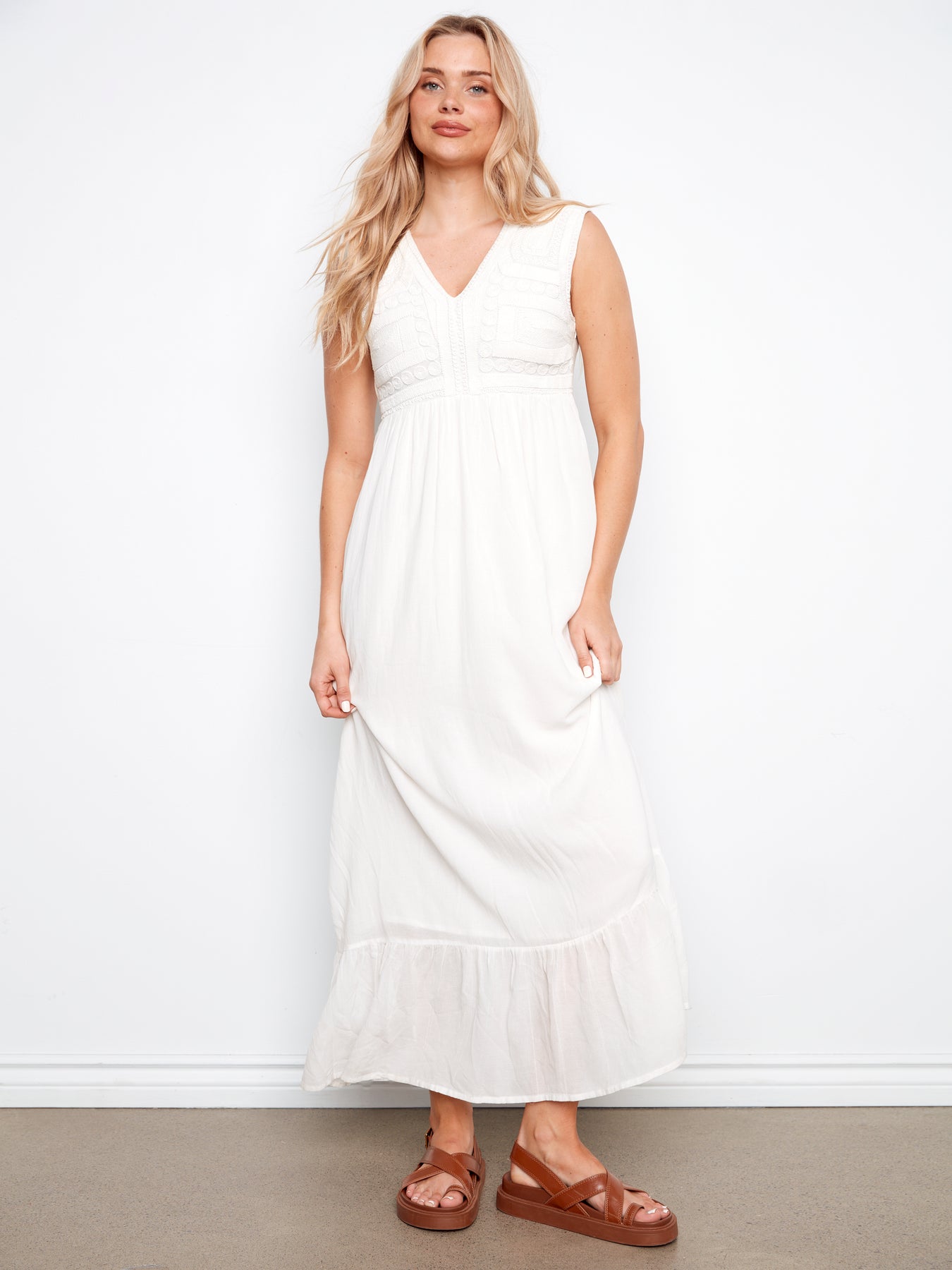 Embroidered Cotton Blend Maxi Dress Charlie B