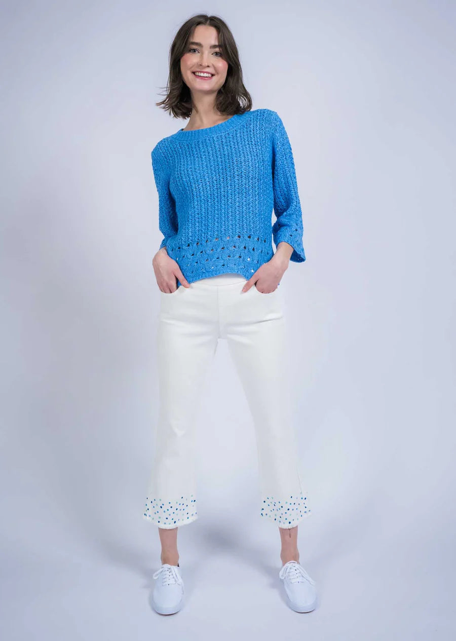 Add some excitement to your wardrobe with this playful and stylish Hampton pant. The confetti embroidered hem adds a touch of flair to your everyday look.
