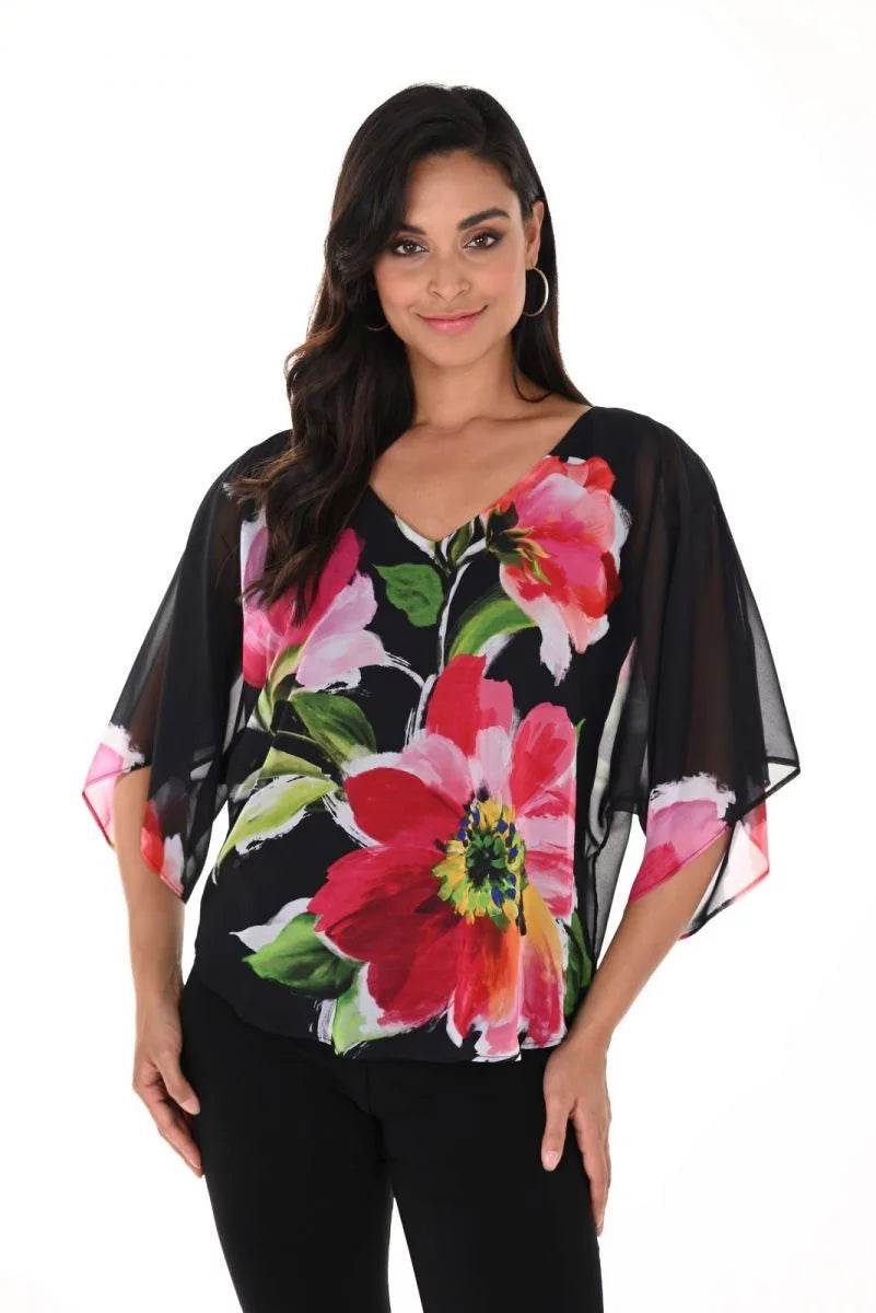 Ascend to new sartorial heights with Frank Lyman's effortless top for warmer climes. Crafted from a luxuriously lightweight chiffon, this eye-catching design is adorned with a brushstroke-inspired floral pattern. Falling into a gentle, unrestricted fit, this remarkable style is ideal for the office or post-work drinks. The delicate plunging V-neck adds a subtly feminine touch, calling out for a splash of jewellery! Partner with its coordinating trousers or team with another bottom for contrast.