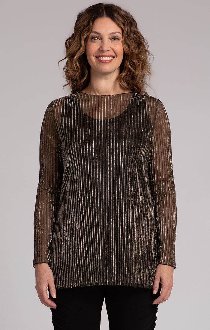 This tunic features pleated mesh that adds a touch of elegance and sophistication to any outfit. Expertly crafted to flatter any body type, this tunic is perfect for any occasion. The pleated mesh not only adds a unique texture to your outfit, but also serves as a breathable and comfortable fabric, making it suitable for all-day wear. With this tunic, you'll never have to sacrifice style for comfort.