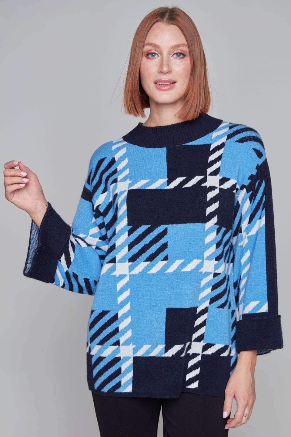 This sweater boasts a timeless plaid pattern and wide sleeves. With its luxurious feel and stylish design, it's the perfect addition to any wardrobe and is sure to keep you cozy and chic all season long.