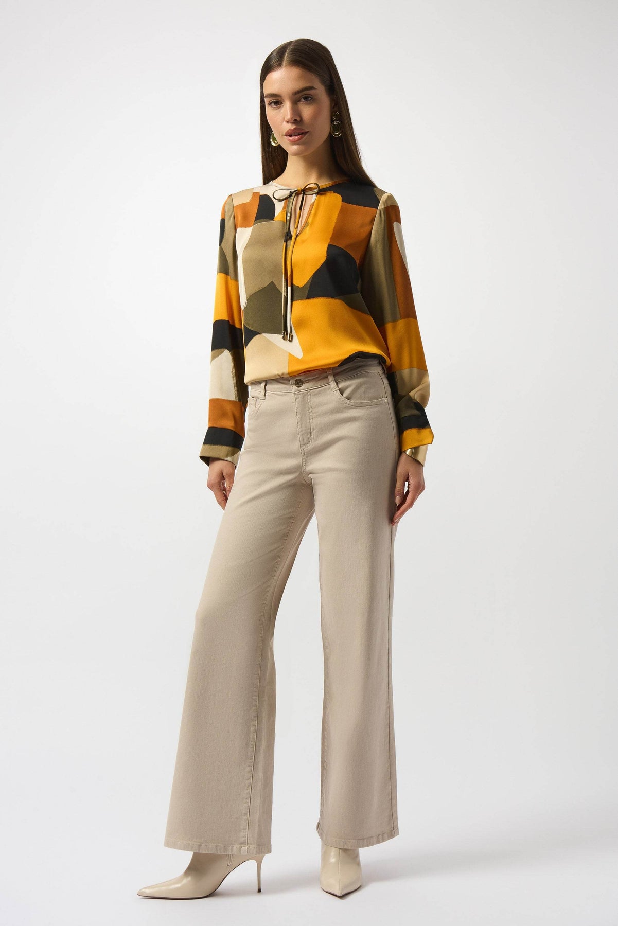 Experience effortless elegance with this tunic made from recycled, flowing satin fabric. It features a relaxed yet timeless straight cut and long sleeves finished with cuffs. The bold abstract print adds a unique flair, while the keyhole neckline with a drawstring detail enhances its sophisticated style.