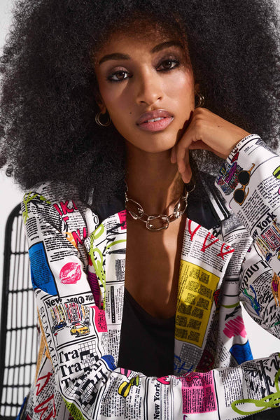 Silky Knit Word Print Fitted Blazer - Dream Pants