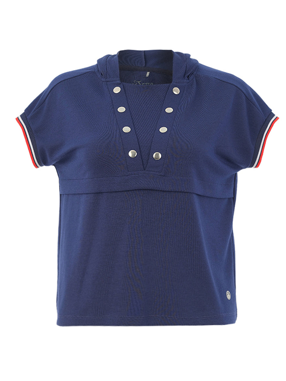 A modern golf top designed with effortless elegance and sporty comfort. Featuring a relaxed silhouette with cap sleeves and distinctive decorative button detailing at the neckline, this top offers a polished yet casual look. The soft stretch fabric moves with you for all-day comfort, making it perfect for the course or relaxed summer outings.