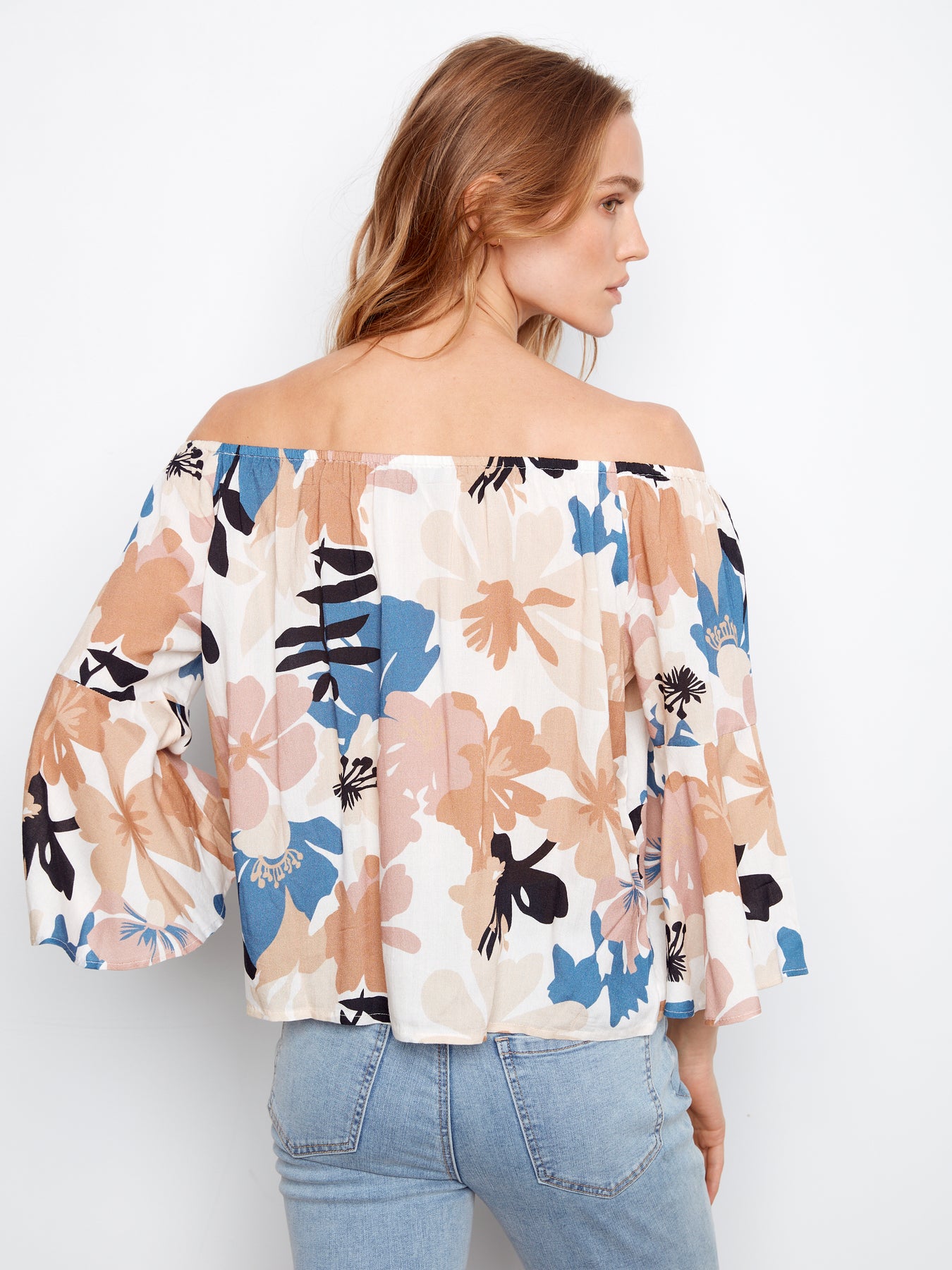 Printed 3/4 Sleeve Off-Shoulder Blouse Charlie B
