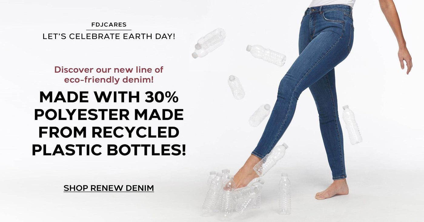 FDJ RENEW DENIM: Discover our new line of eco-friendly denim! Made with 30% Polyester made from recycled plastic bottles!