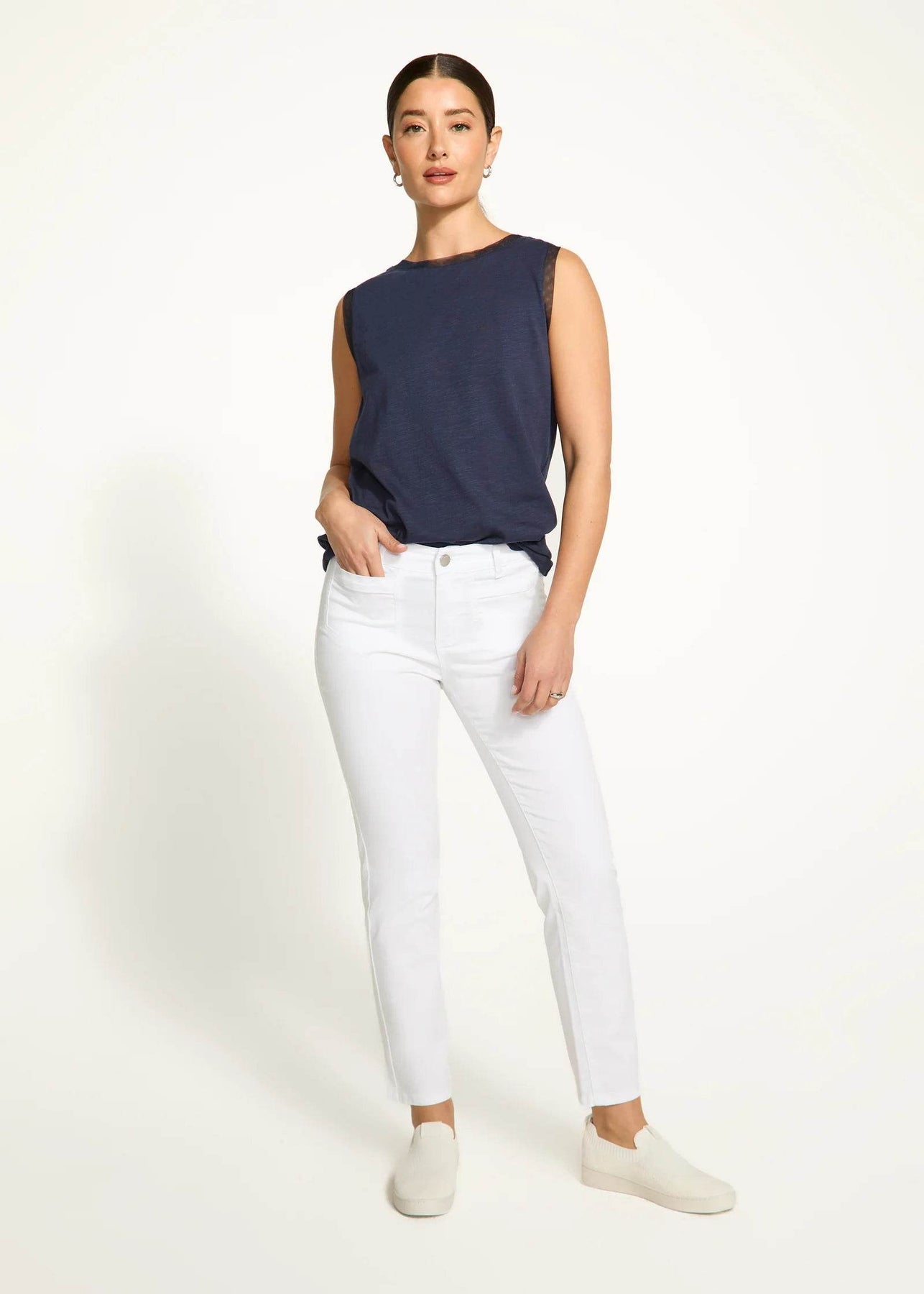 This cami top features a classic boat neck design, perfect for any occasion. Boasting a versatile cut and a comfortable fit, it's a staple piece for any wardrobe.