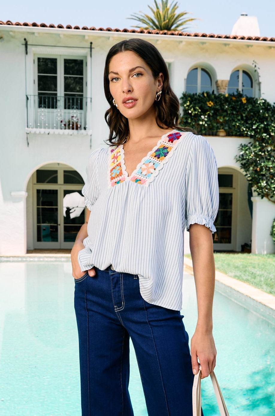 Upgrade your wardrobe with our stunning V-Neck Crochet Trim Blouse! Made with high-quality materials, this blouse offers delicate crochet detailing that adds a touch of elegance to any outfit. Perfect for any occasion, it's a must-have for any fashion-forward woman. Order yours today and step up your style game!