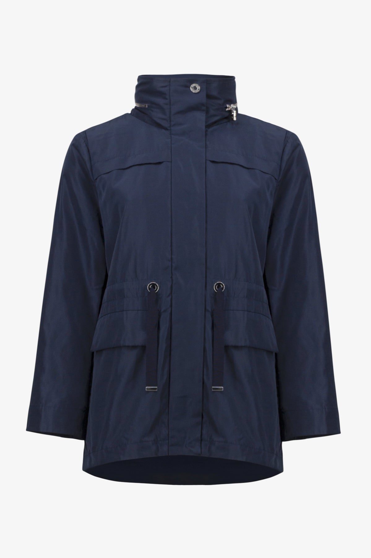 Discover effortless style with this water-resistant anorak, engineered for modern living. The streamlined design features a convenient snap-front closure, concealed zipper, and refined grosgrain drawstring accents. Practical flap pockets keep essentials within reach, while an ingenious hidden hood tucks seamlessly into the funnel collar—ready whenever weather demands it. Perfect for transitional seasons and unpredictable days.
