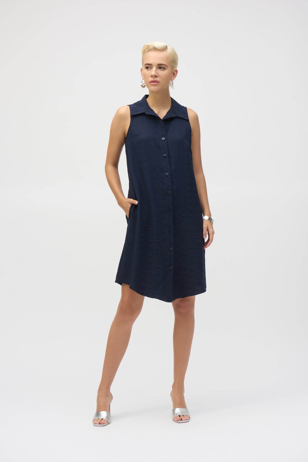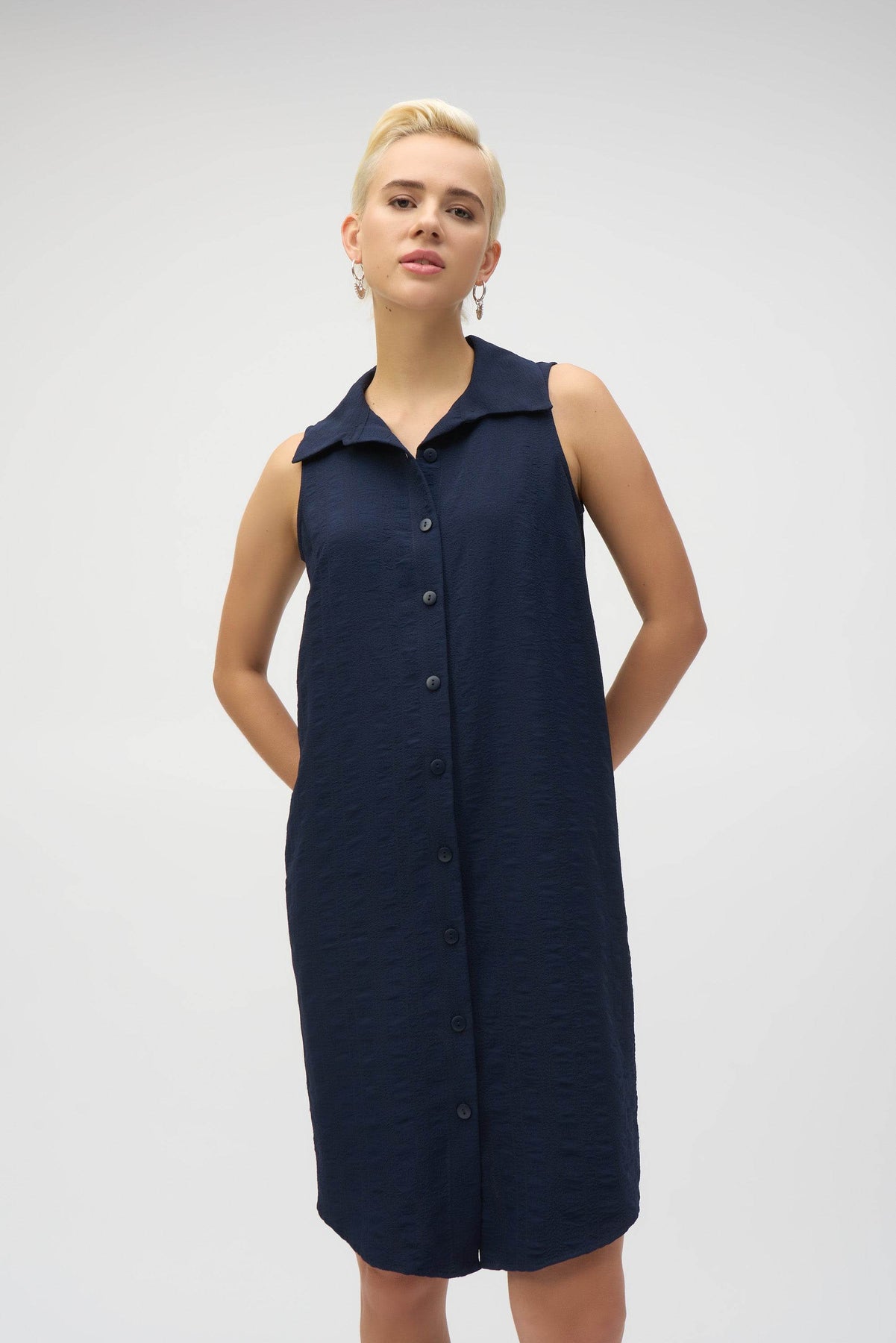 Indulge in the same beloved boyfriend shirt dress vibe with this sleeveless version made from a lightweight novelty fabric that adds a charming waffle texture. Complete with a classic shirt collar and front button placket, this must-have style falls just above the knee for the perfect length.