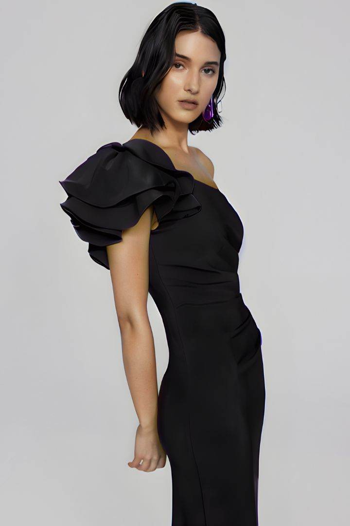 Revel in effortless refinement with this solid lux twill sheath dress. Adorned with elegant wire ruffles, the one-shoulder neckline exudes playful sophistication. Crafted with meticulous attention to detail, it features a discreet back zipper closure for a seamless fit. Lined for utmost comfort, this piece of luxury provides a delightful feel against the skin. Ideal for upscale events and cocktail parties, style it with statement earrings and strappy heels for a captivating ensemble that draws admiring glances. Part of the Signature Collection.