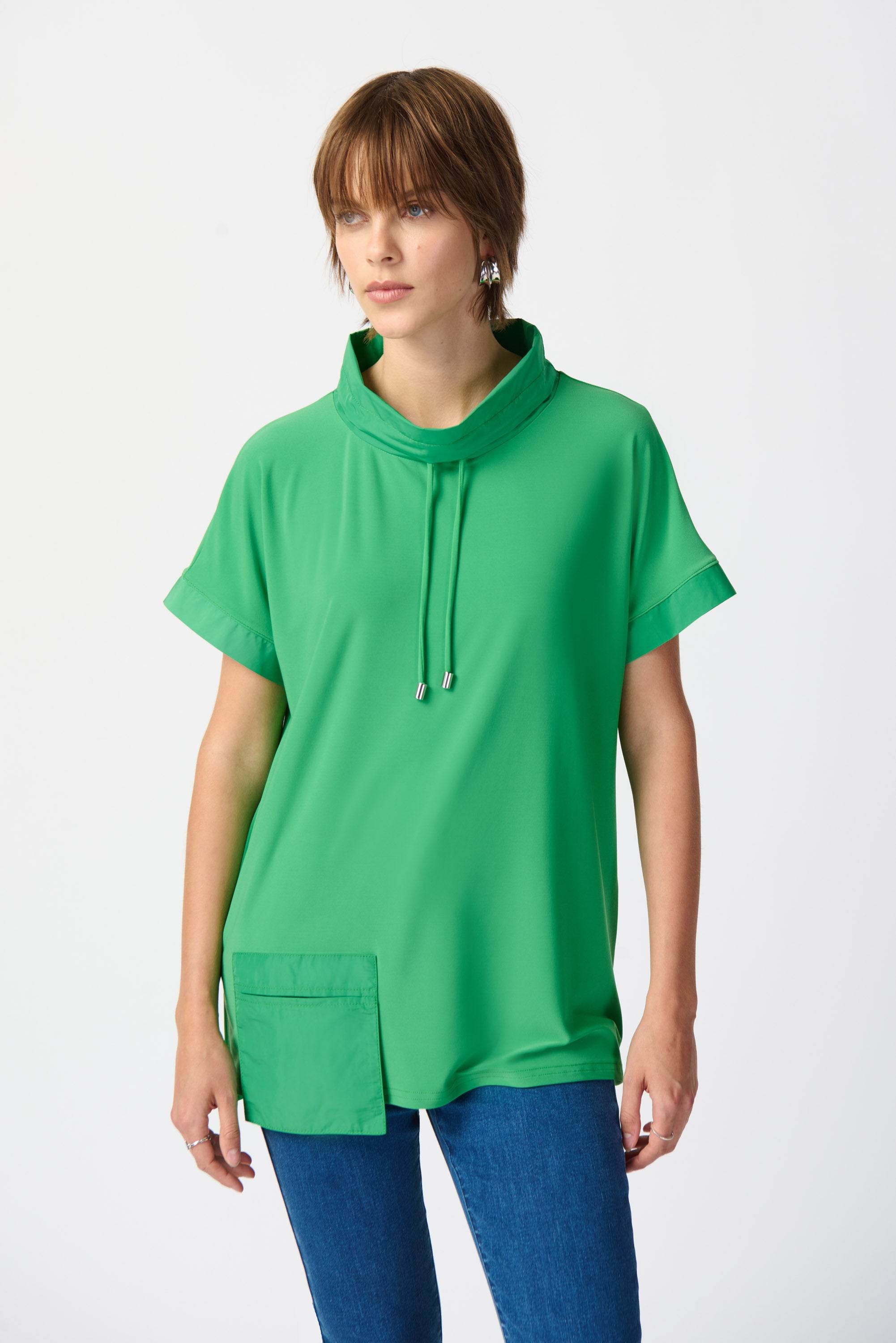 Elevate your everyday wardrobe with a sumptuous knit topcrafted with a delicate texture and delicate dolman sleeves. Luscious memory fabric enhances the cowl neck, pockets, and sleeves, providing textural sophistication to this voguish tee.
