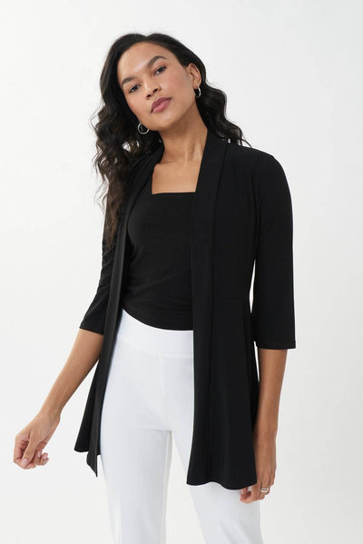 The Joseph Ribkoff Cover-Up is the stylish yet simple addition your wardrobe desires. With three-quarter-length sleeves and a comfortable easy fit, this cover-up adds effortless elevation to your everyday attire.