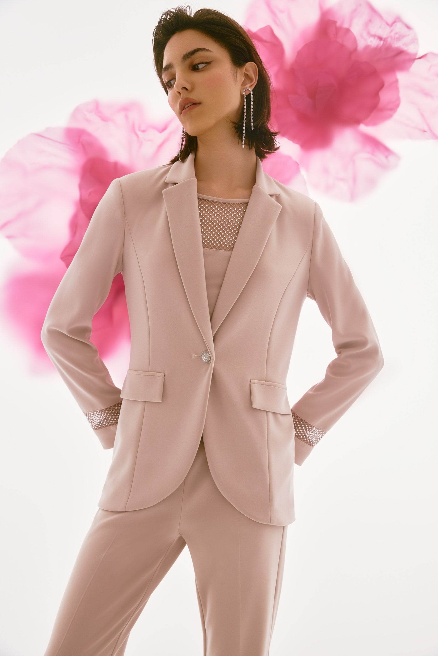 Silky Knit and Rhinestone Mesh Blazer - Dream Pants