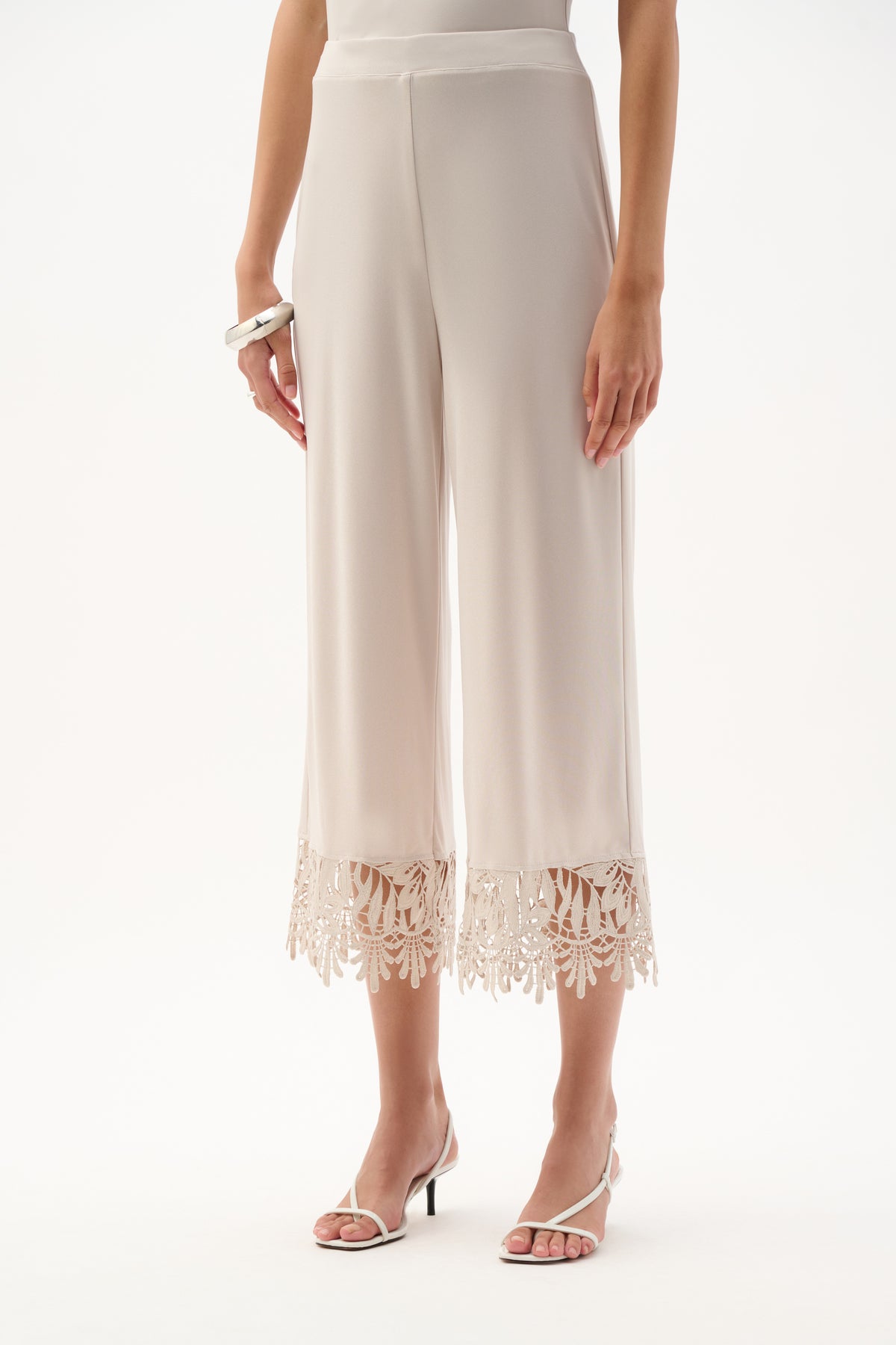Silky Knit Culotte Pants With Guipure Lace Hem Joseph Ribkoff