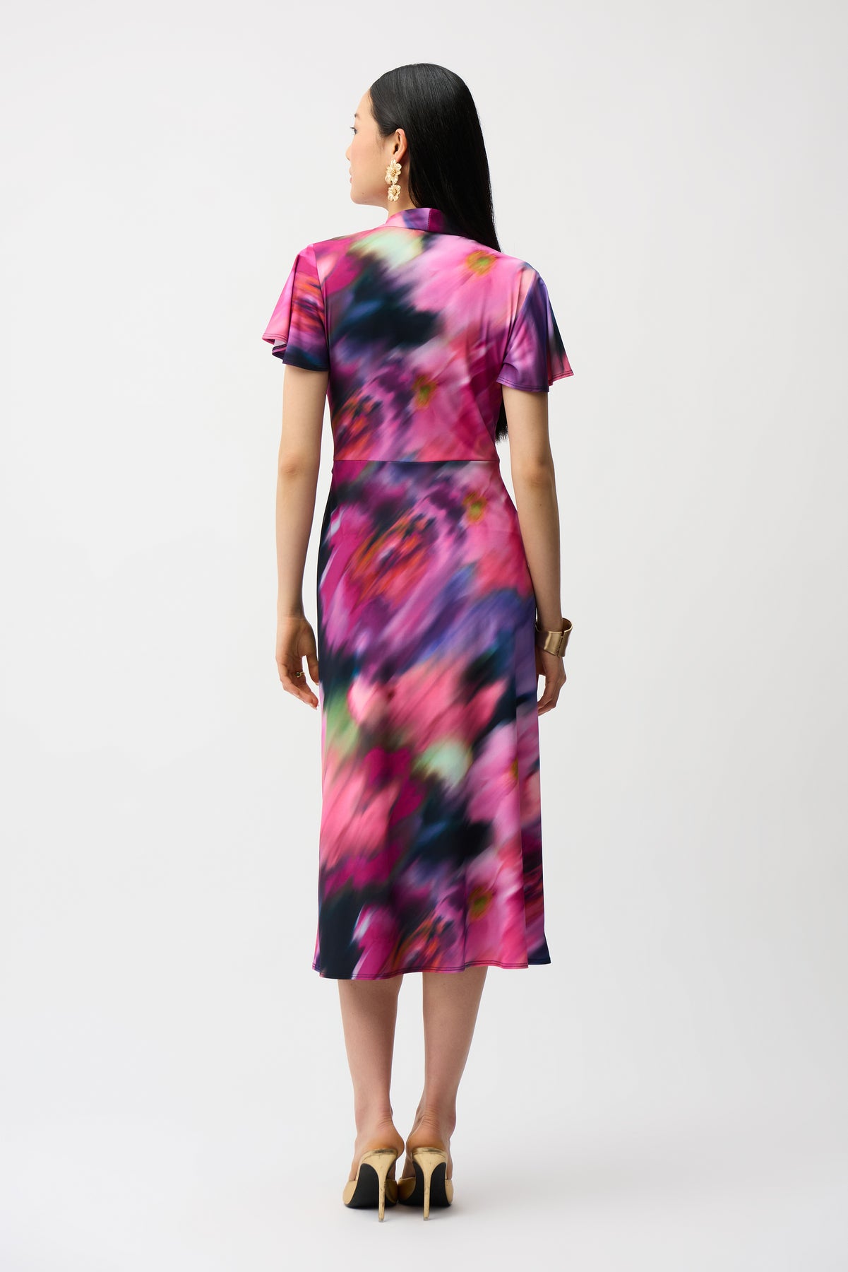 Elevate your wardrobe with this stunning floral wrap dress that seamlessly blends timeless elegance with contemporary style. The luxurious silky knit fabric drapes beautifully across the front, while the wrap neckline and delicate cap sleeves create a flattering silhouette. The asymmetrical high-low hem adds movement and sophistication, making it perfect for any occasion where you want to look effortlessly polished and refined.