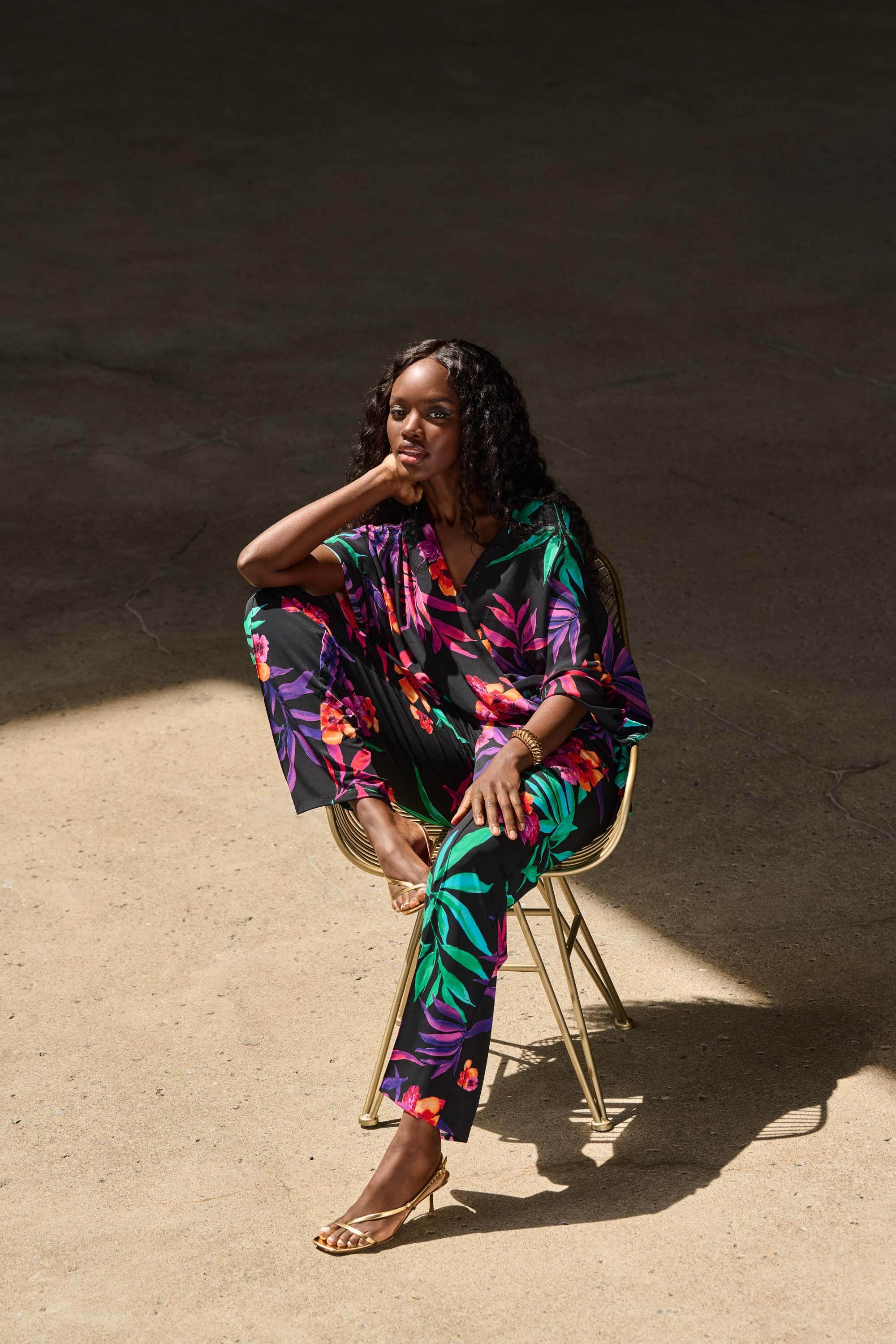 Silky Knit Tropical Print Wide-Leg Pants - Dream Pants