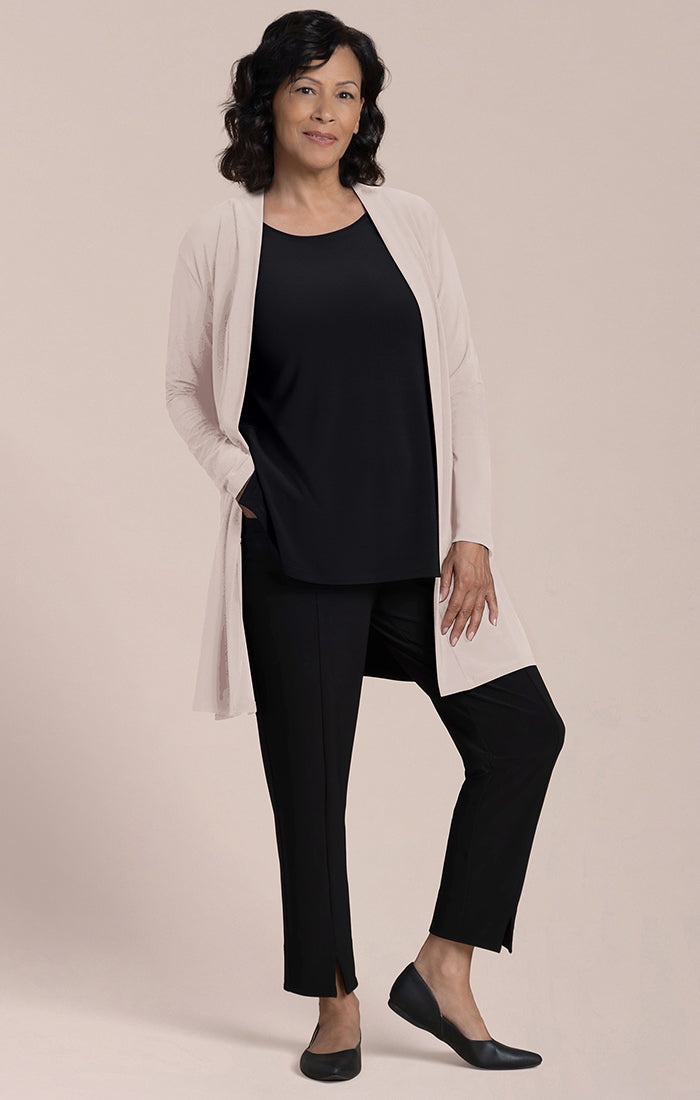 Experience effortless style and comfort with the Carefree Cover. Designed for everyday wear, this lightweight, knee-length cover features convenient side slits for ease of movement. Perfect for layering, it combines practicality with a breezy, relaxed fit you'll love all day long.