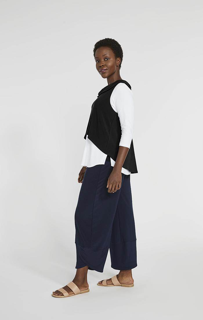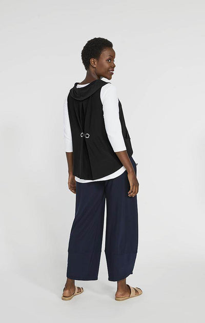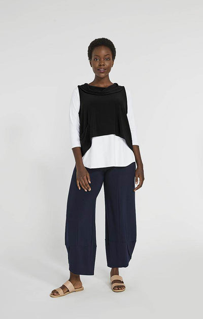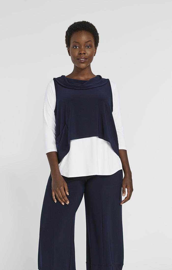 Sympli Women's Halo Shorty Top, Style 21187, is a fun 'top off anything' piece with a cowl neckline and a hi-lo hemline and metal ring detail in the back. Add some zest to your wardrobe by layering this over your favourite tops, for some extra length and coverage!