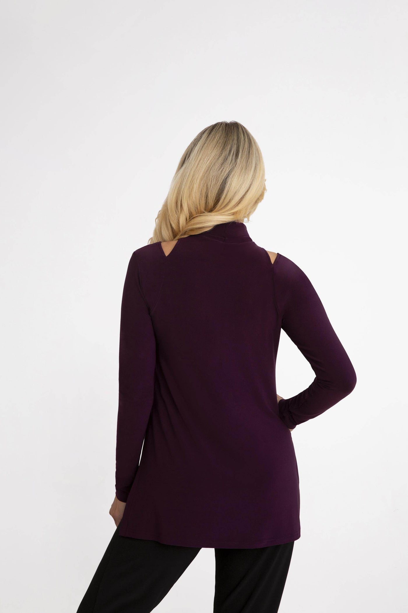 Sympli Slice it Tunic, Long Sleeves, Style 23190-3. This gorgeous tunic features a mock neckline with side cut-outs and side slits for an effortless drape and silhouette.