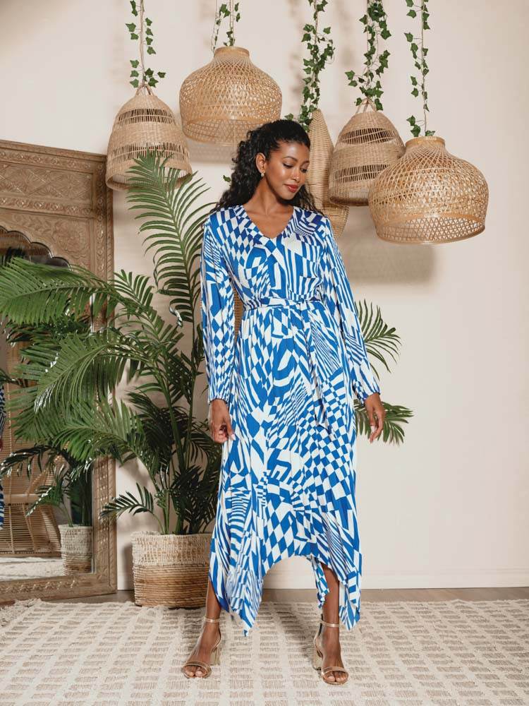 L'imprimé abstrait et fluide de cette robe vous donnera l'impression d'être une œuvre d'art en toute occasion. Avec son design élégant et son tissu luxueux, c'est une pièce incontournable de votre garde-robe. Révélez la fashionista qui est en vous et affirmez votre style où que vous alliez.