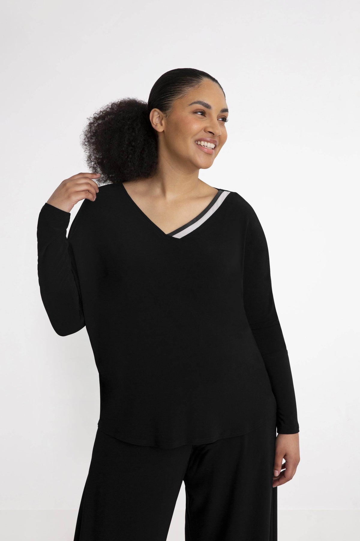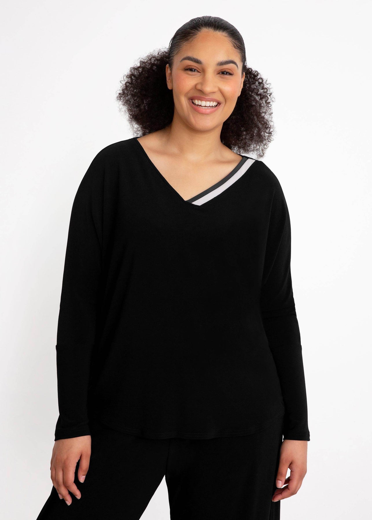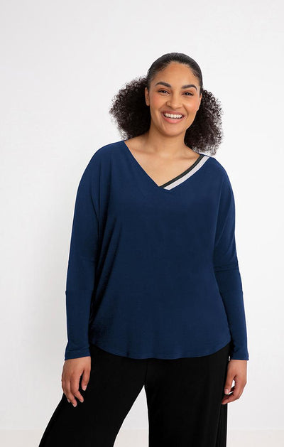 Le Sympli Underline Cinch Top est notre nouveau favori ! Dispose d'un col en V avec coutures bicolores et d'une coupe droite classique. On aime aussi les manches longues ! À assortir avec le pantalon souligné, pour une tenue parfaite !