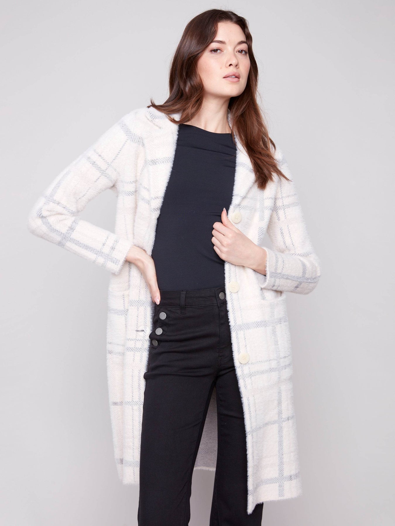 Sublimez votre garde-robe avec le gilet long en maille à carreaux, un parfait mélange de douceur et d'élégance classique. Doté d'une fermeture boutonnée, ce gilet offre une superposition polyvalente idéale pour les journées plus fraîches, alliant la chaleur d'un pull à la structure d'un manteau. Sa coupe longue assure une couvrance optimale et une silhouette flatteuse, le rendant parfait pour les sorties décontractées comme pour les tenues plus sophistiquées. Adoptez le confort sans sacrifier le style avec cette pièce intemporelle qui rehausse instantanément n'importe quelle tenue.