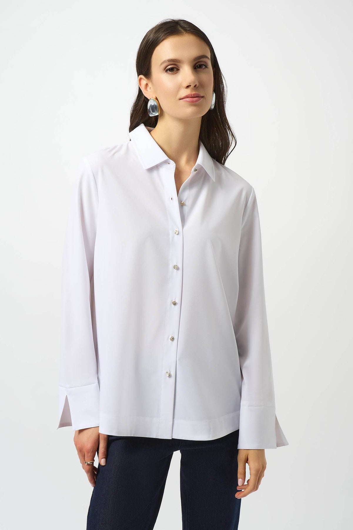 Stretch Poplin Button-Front Boxy Blouse - Dream Pants