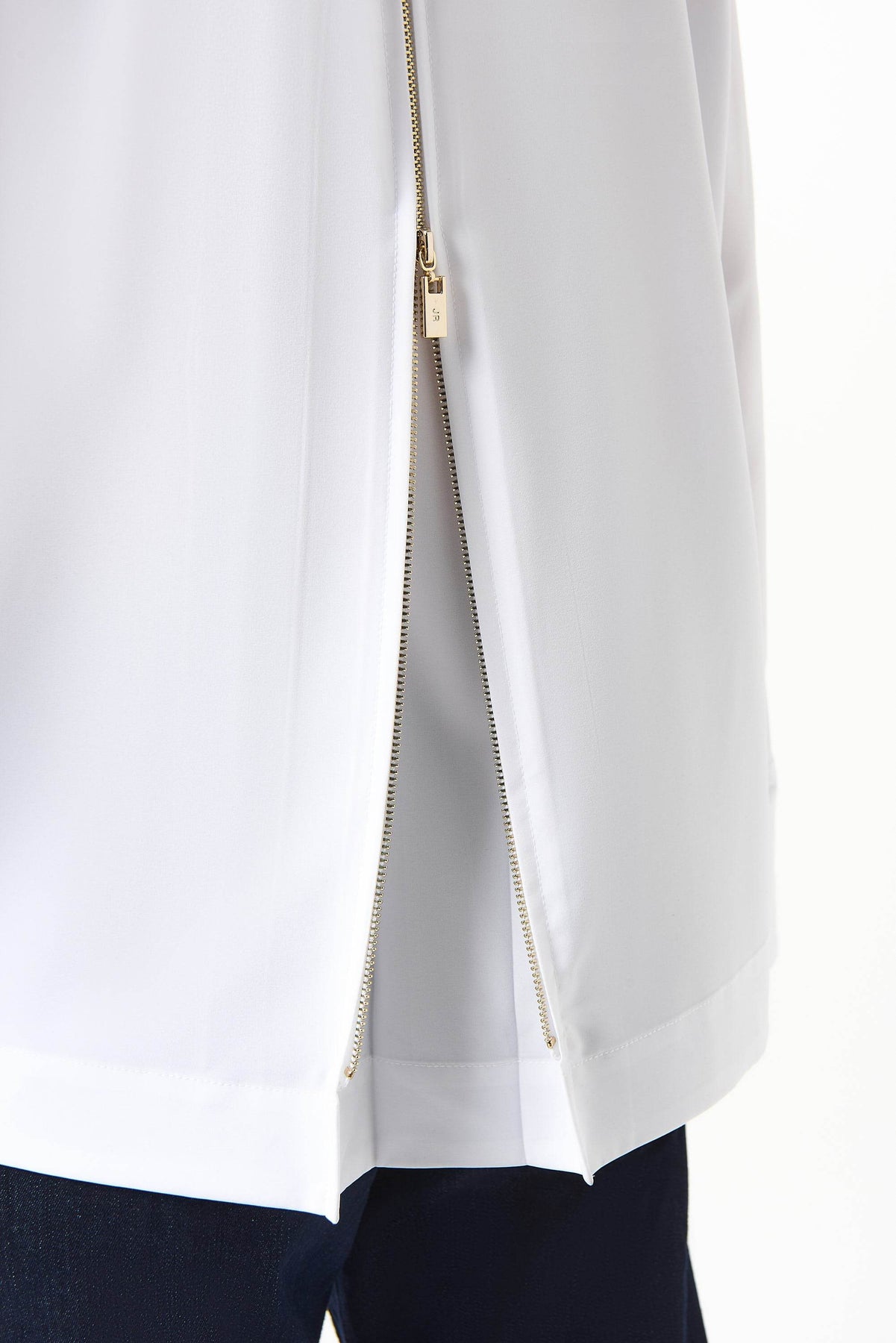 Ce chemisier à la coupe décontractée est confectionné en popeline légère et présente une fermeture boutonnée classique, pour une élégance naturelle. Agrémenté de boutons dorés, d'un col chemise traditionnel et de poignets froncés, il apporte une touche raffinée à votre garde-robe. La fente au dos ornée d'une fermeture éclair dorée lui confère une allure moderne, faisant de ce chemisier un choix essentiel et stylé pour la femme d'aujourd'hui en quête d'élégance et de polyvalence.