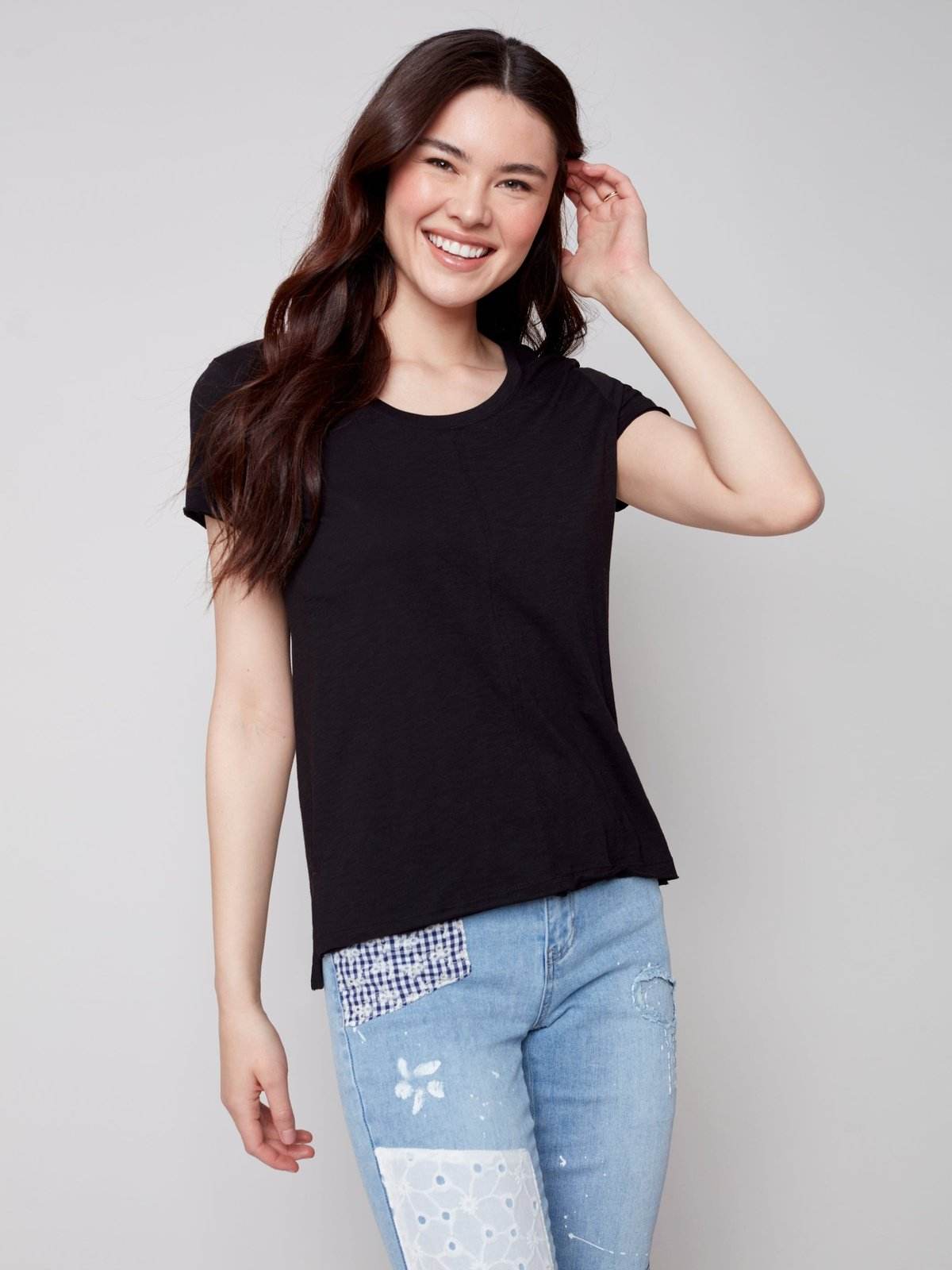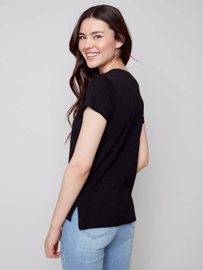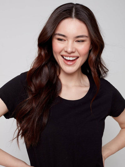 Notre Haut en tricot à manches courtes en coton flammé biologique est votre pièce incontournable pour un style sans effort et un confort suprême ! Un bel ajout à votre rotation de garde-robe printemps/été avec des détails de couture avant !