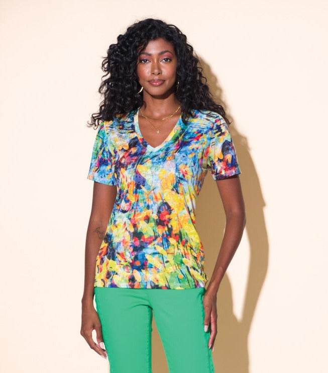 Colorful Print V-Neck T-Shirt - Dream Pants