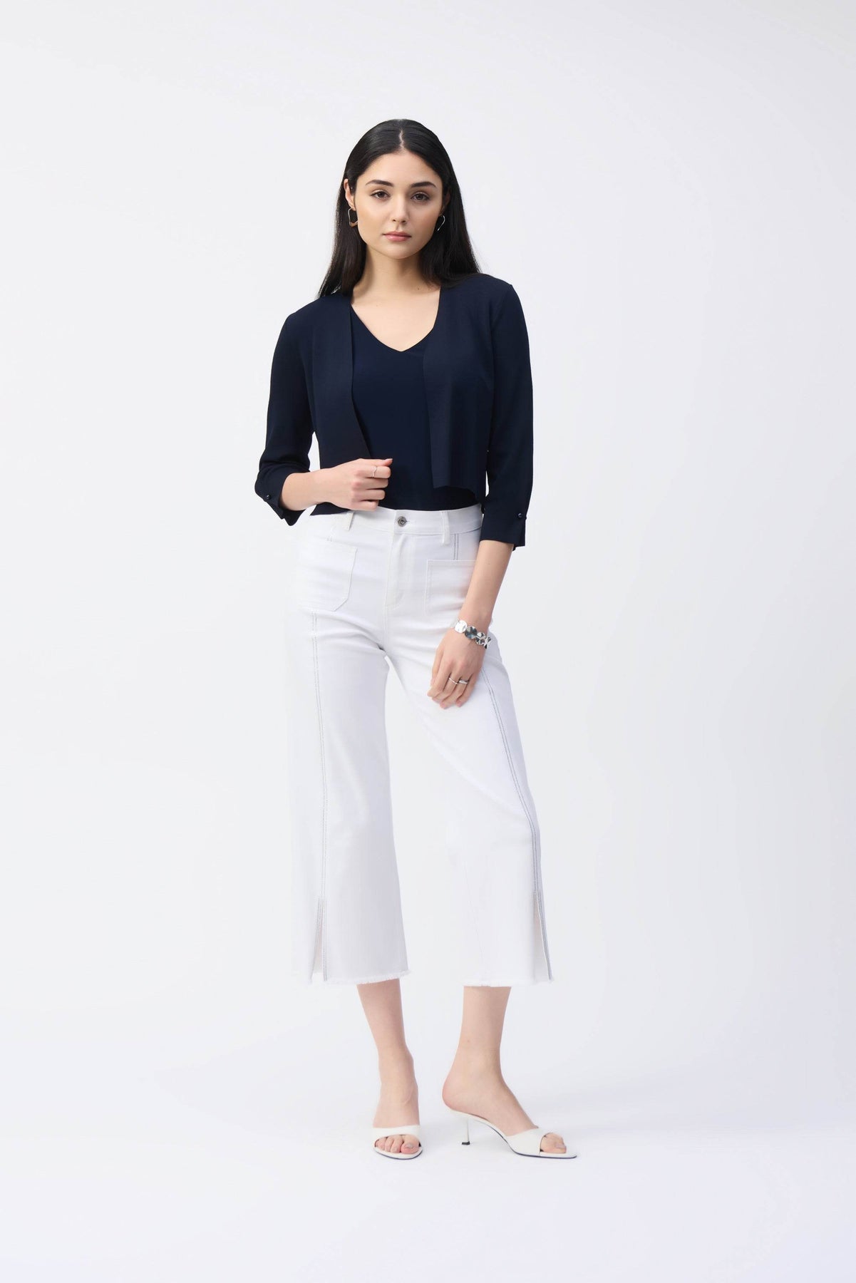 Sublimez votre tenue avec ce gilet en maille, orné d'élégants détails de perles aux poignets. Sa coupe ouverte sur le devant, ses manches trois-quarts et sa longueur plus courte offrent un équilibre parfait entre style et protection.