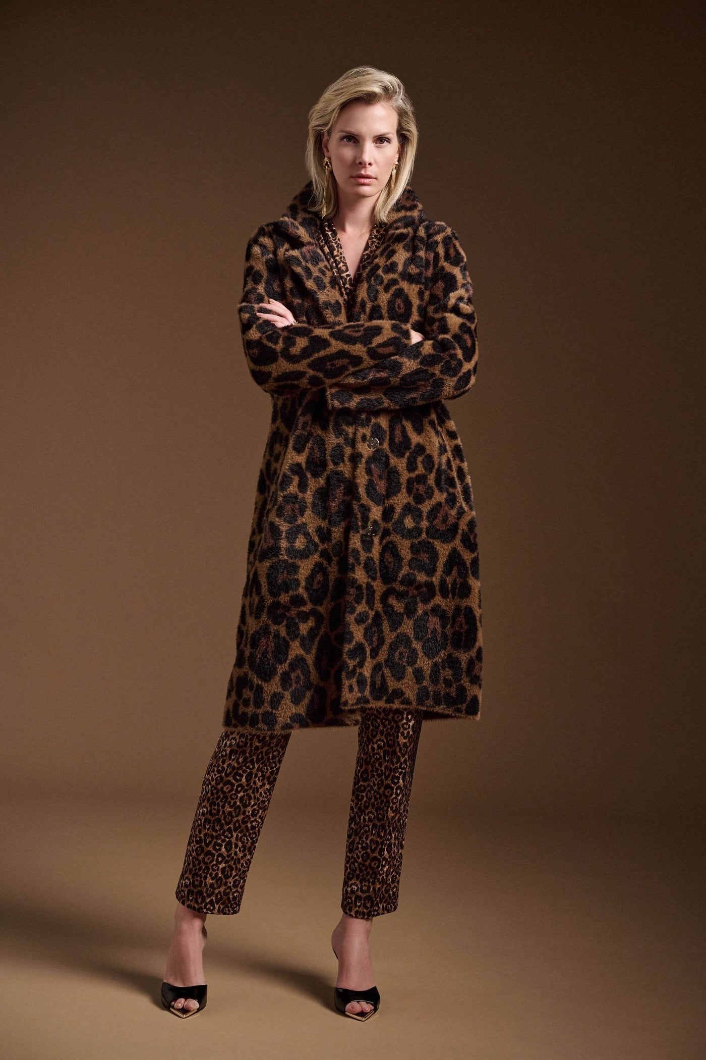 Adoptez un style impeccable avec ce pantalon à enfiler en maille soyeuse à imprimé animal, alliant confort et élégance. L'imprimé animal séduisant sur la superbe maille soyeuse évoque un charme intemporel, tandis que la coupe droite et épurée flatte la silhouette.
