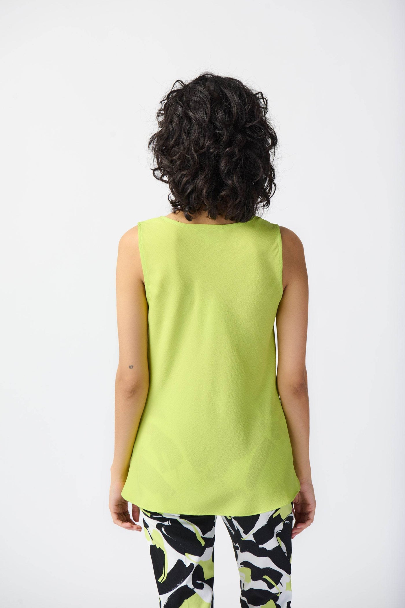 Confectionné dans une gaze fine et délicate, ce top sans manches apportera une touche d'élégance instantanée à toutes vos tenues. Sa coupe droite flatteuse et son col drapé lui confèrent une allure chic et assurée, idéale pour faire sensation en toutes circonstances.