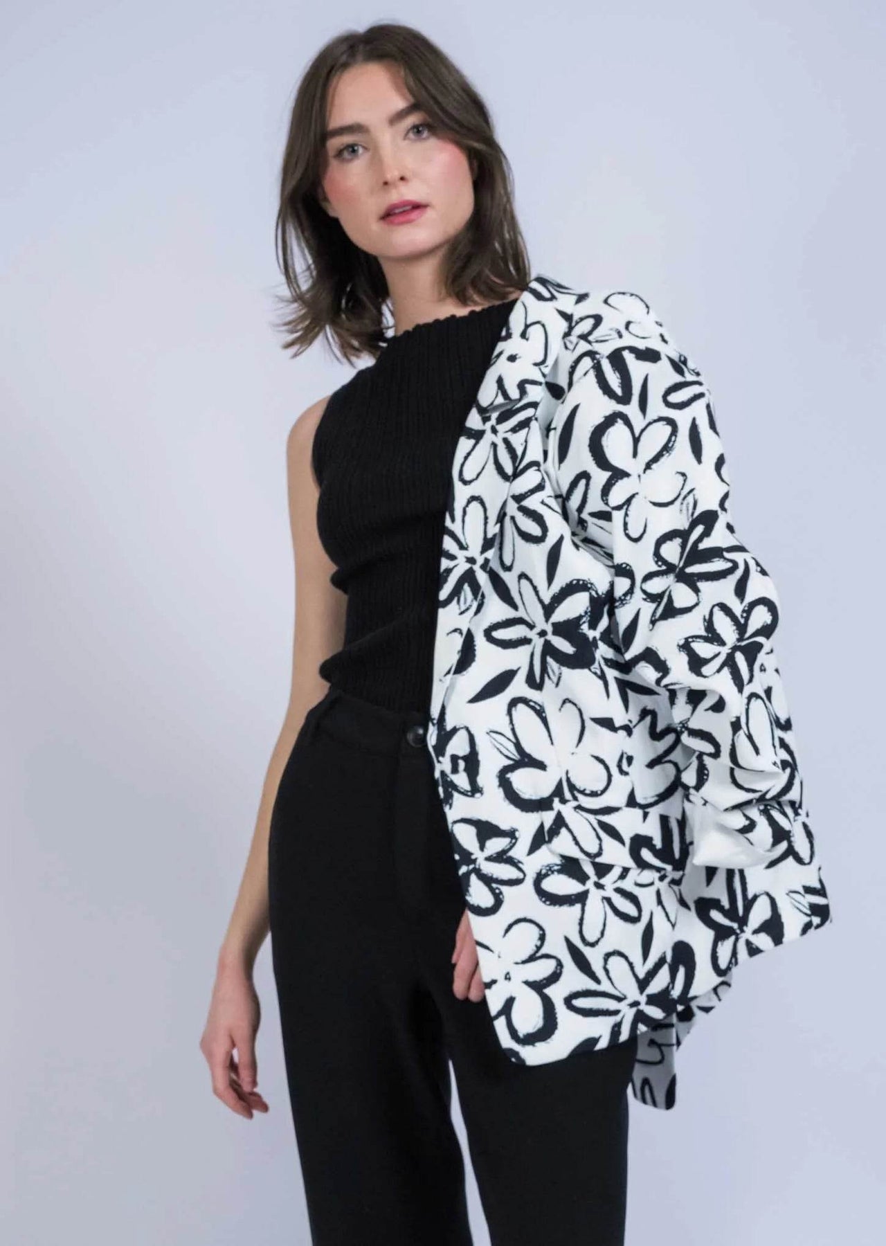 Apportez une touche d'élégance à votre garde-robe avec notre blazer Eleanor à manches 3/4, orné d'un superbe imprimé floral qui modernise ce classique. Il mettra assurément toutes les silhouettes en valeur !