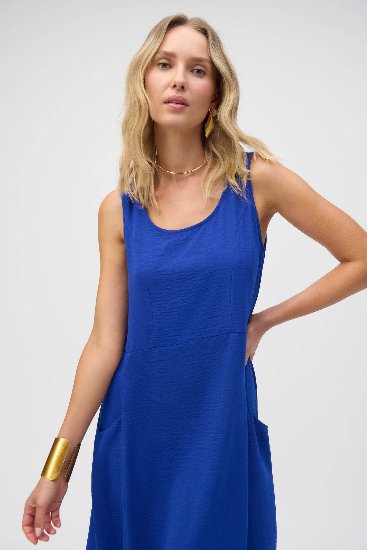 Découvrez l'élégance et le charme intemporel de cette robe en gaze, qui vous permettra d'afficher une confiance rayonnante. Dotée d'une encolure ronde raffinée et d'une coupe sans manches, cette pièce évoque une esthétique classique et parfaite. La taille cintrée et les poches de la jupe allient style et praticité, apportant une touche d'originalité à ce vêtement.
