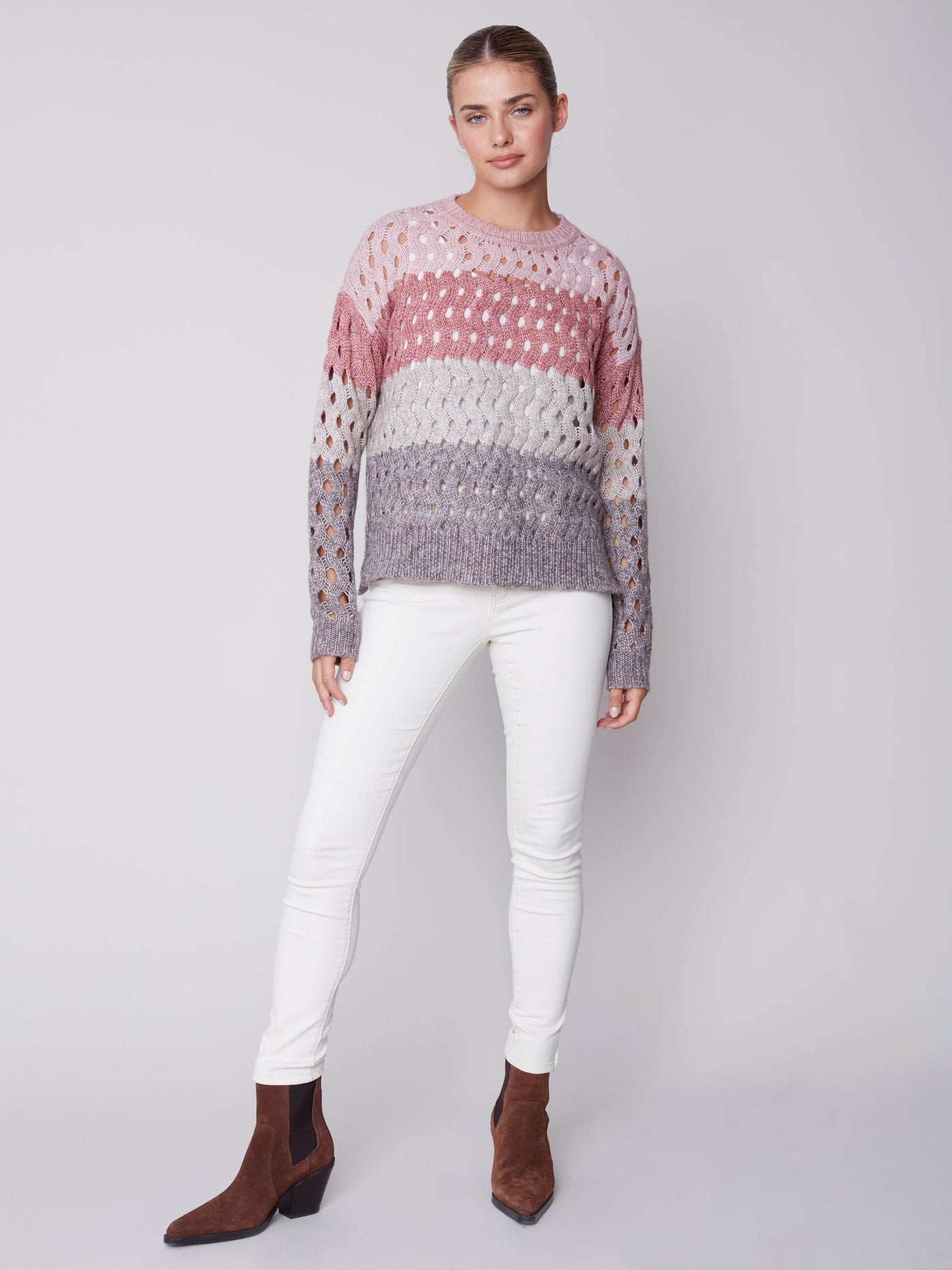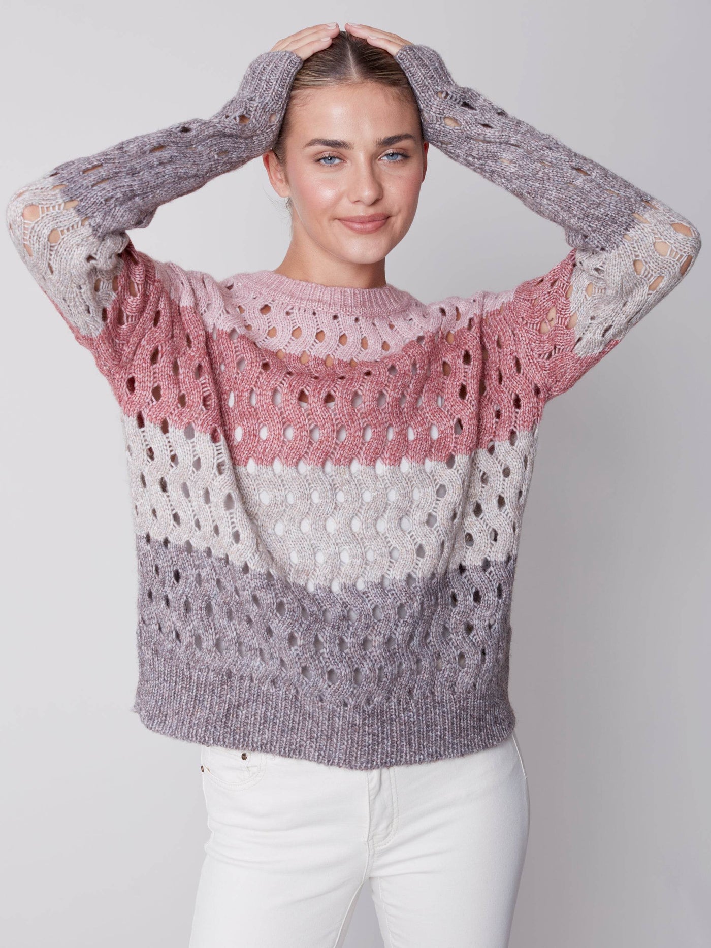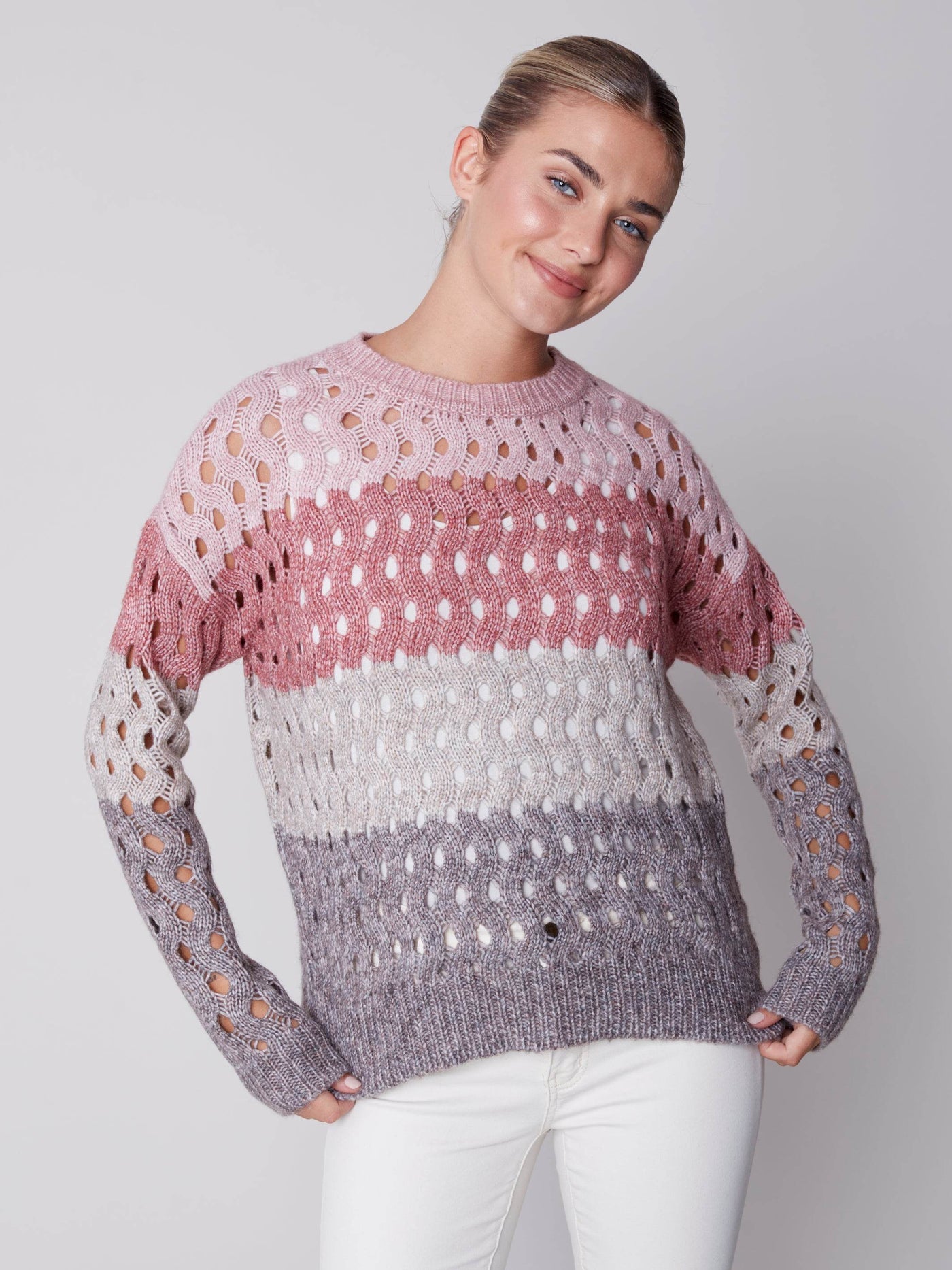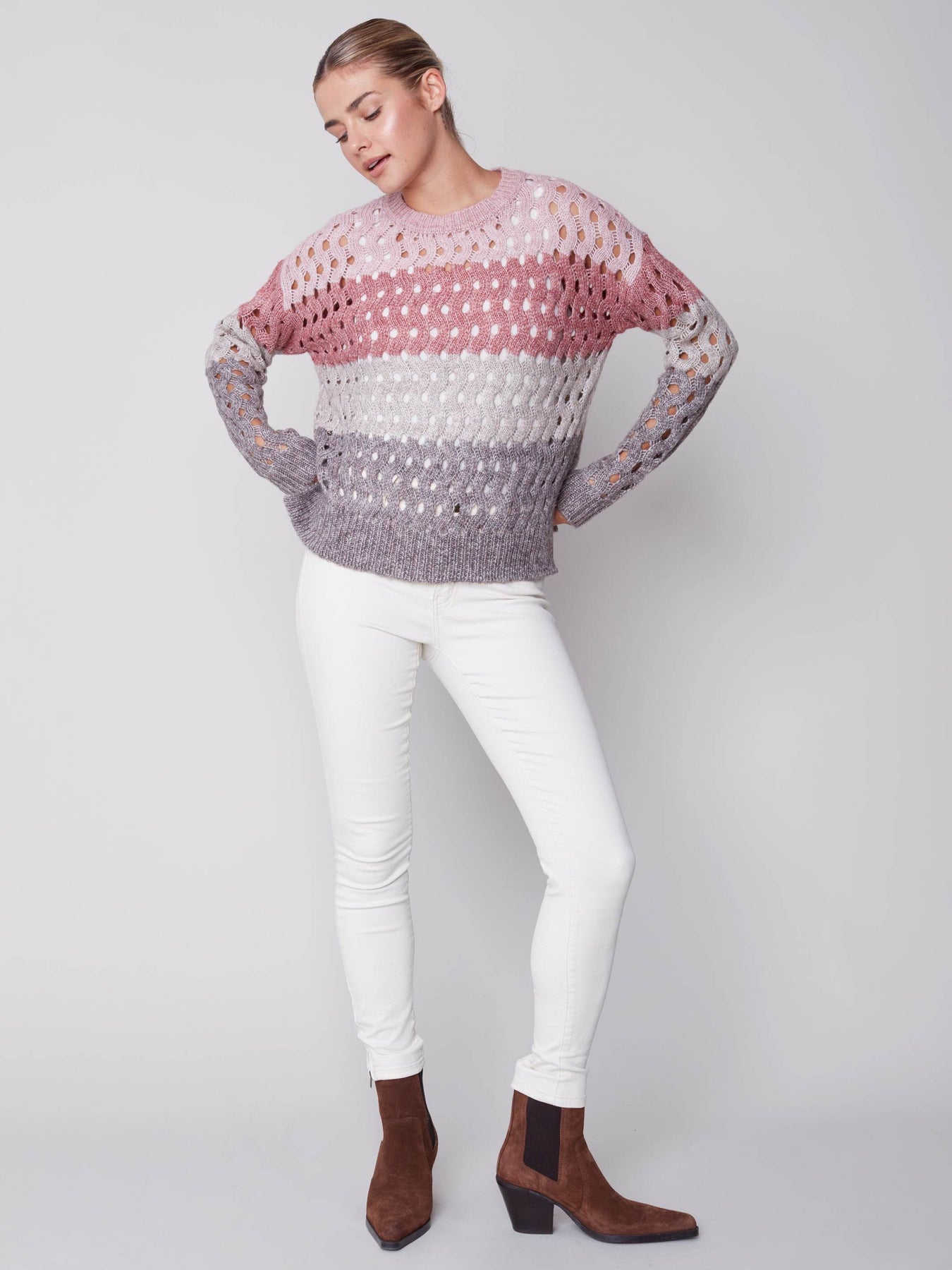 Striped Wavy Net Stitch Sweater - Dream Pants