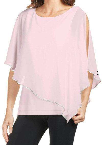 Le top en mousseline à volants Frank Lyman, modèle 185420, est la pièce idéale pour sublimer votre garde-robe. Avec sa magnifique cape en mousseline superposée, ce top flatte toutes les silhouettes et vous assure un look irrésistible ! Parfait en toute occasion, il se porte aussi bien avec un jean qu'avec un pantalon de soirée élégant.