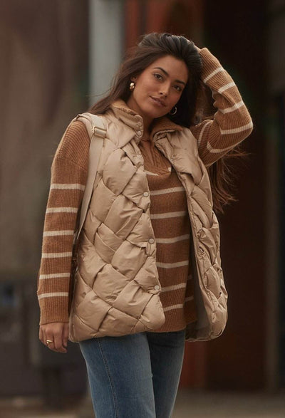 Quilted Zip-Up Vest with Stud Accents Dolcezza