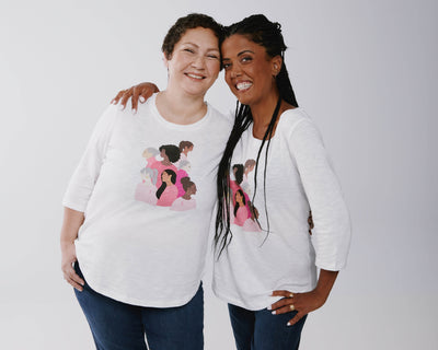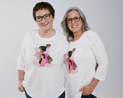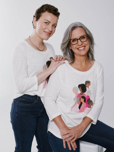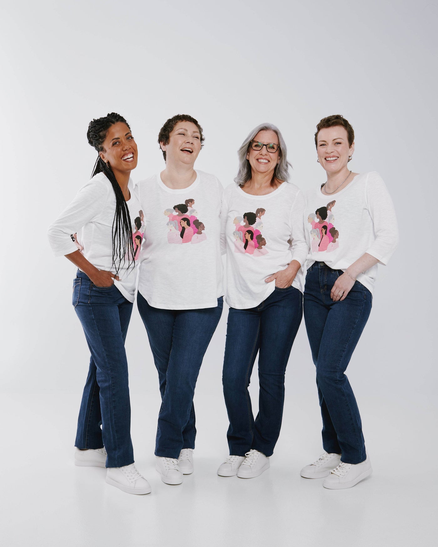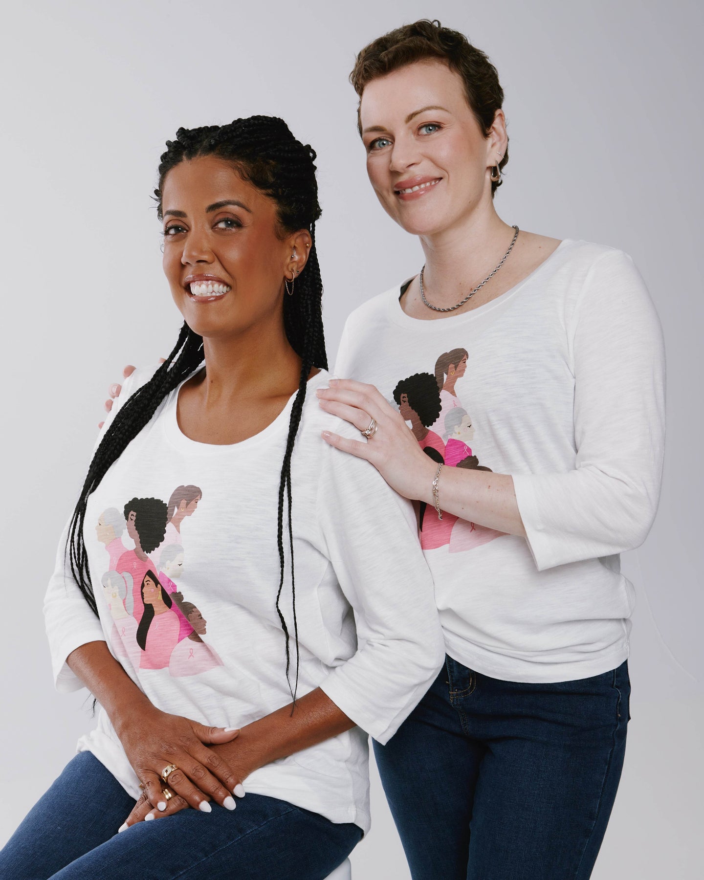 Faites la différence, un t-shirt à la fois. Dédié aux femmes qui luttent contre tous les types de cancer. FDJ est fier d'être partenaire de la fondation Look Good Feel Better et propose des services de bien-être à travers divers ateliers dans les hôpitaux et les centres de cancérologie du sein. Création de l'artiste locale Madeleine Marx.