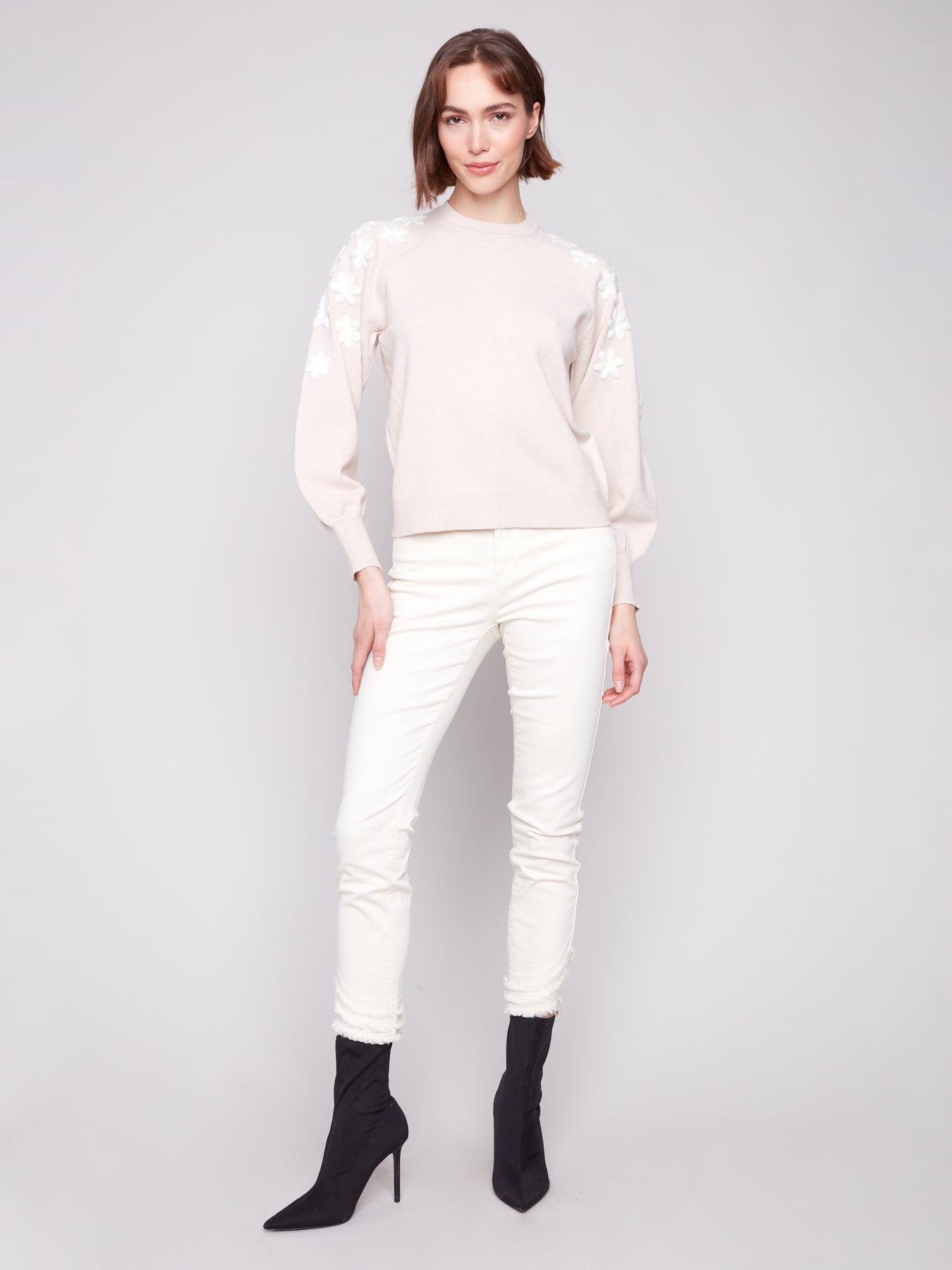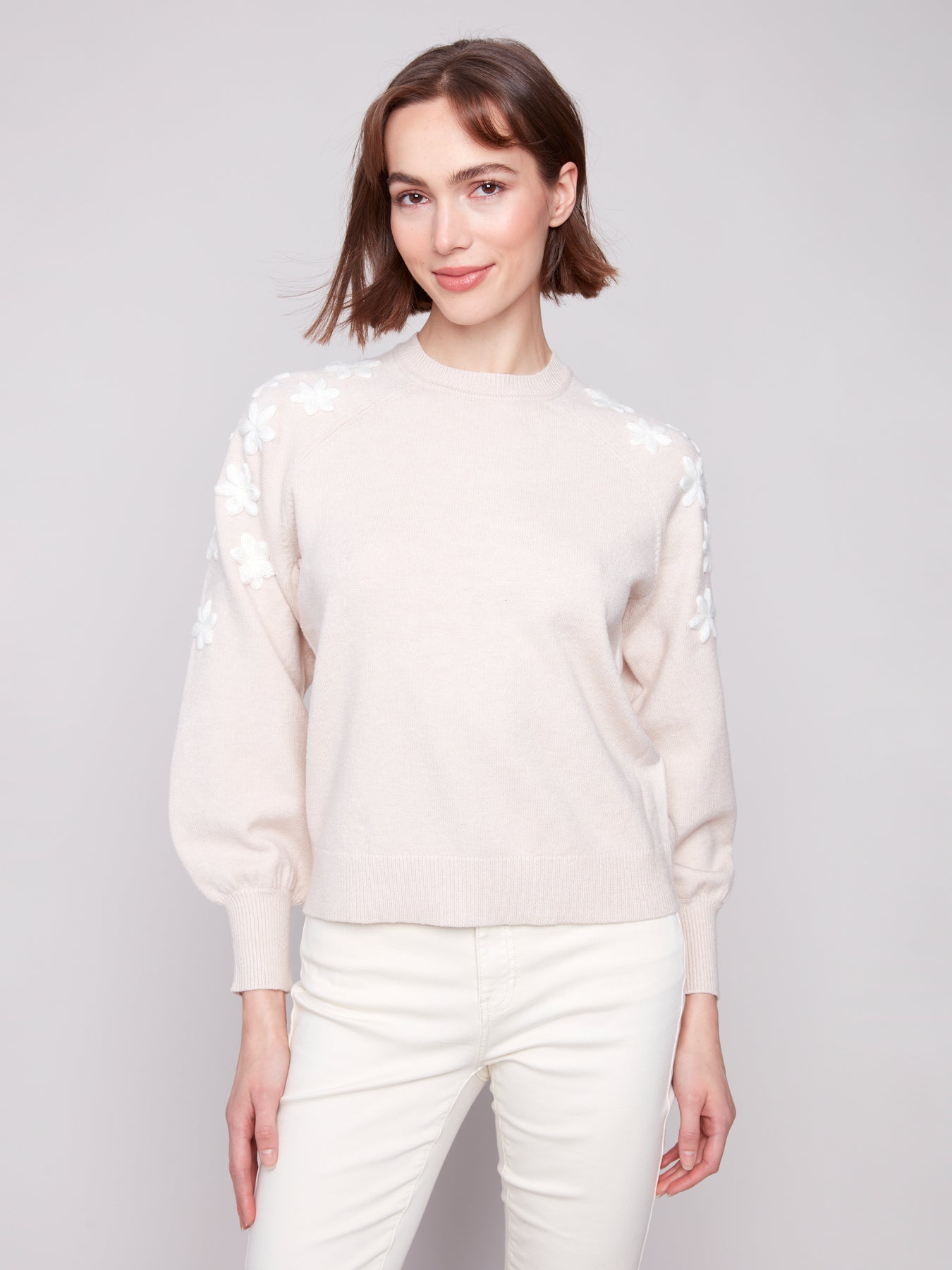 Crew Neck Sweater With Embroidered Flowers Charlie B