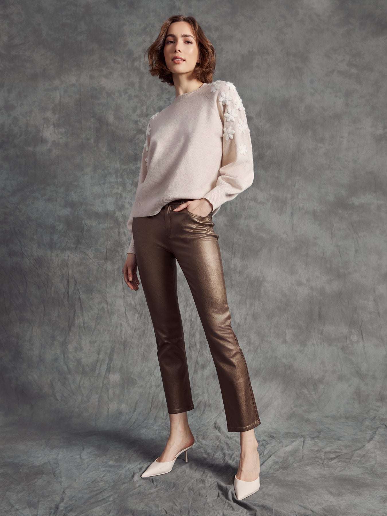 Ce pull à col rond allie confort classique et détails féminins délicats. Ses manches raglan bouffantes apportent un volume subtil et flatteur à votre silhouette. De délicates broderies florales ornent les épaules, ajoutant une touche d'élégance et de raffinement à votre style quotidien. Confectionné dans une matière douce et confortable, ce pull est idéal à porter seul ou sous un autre vêtement, pour un style impeccable et un confort optimal tout au long de la journée. Sublimez votre garde-robe avec cette pièce charmante qui marie avec brio un design intemporel à des broderies uniques.