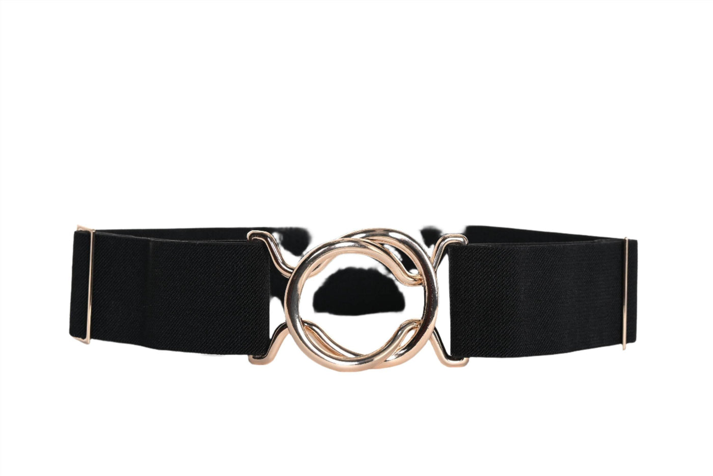 Elevate any ensemble with this chic high fashion belt that showcases gorgeous connecting circular buckles in gold. Take your look from basic to excellent with this stylish accessory.