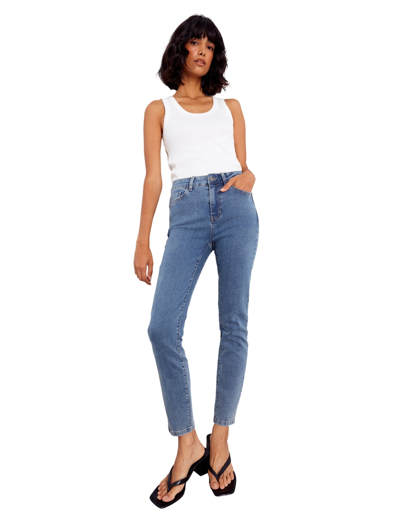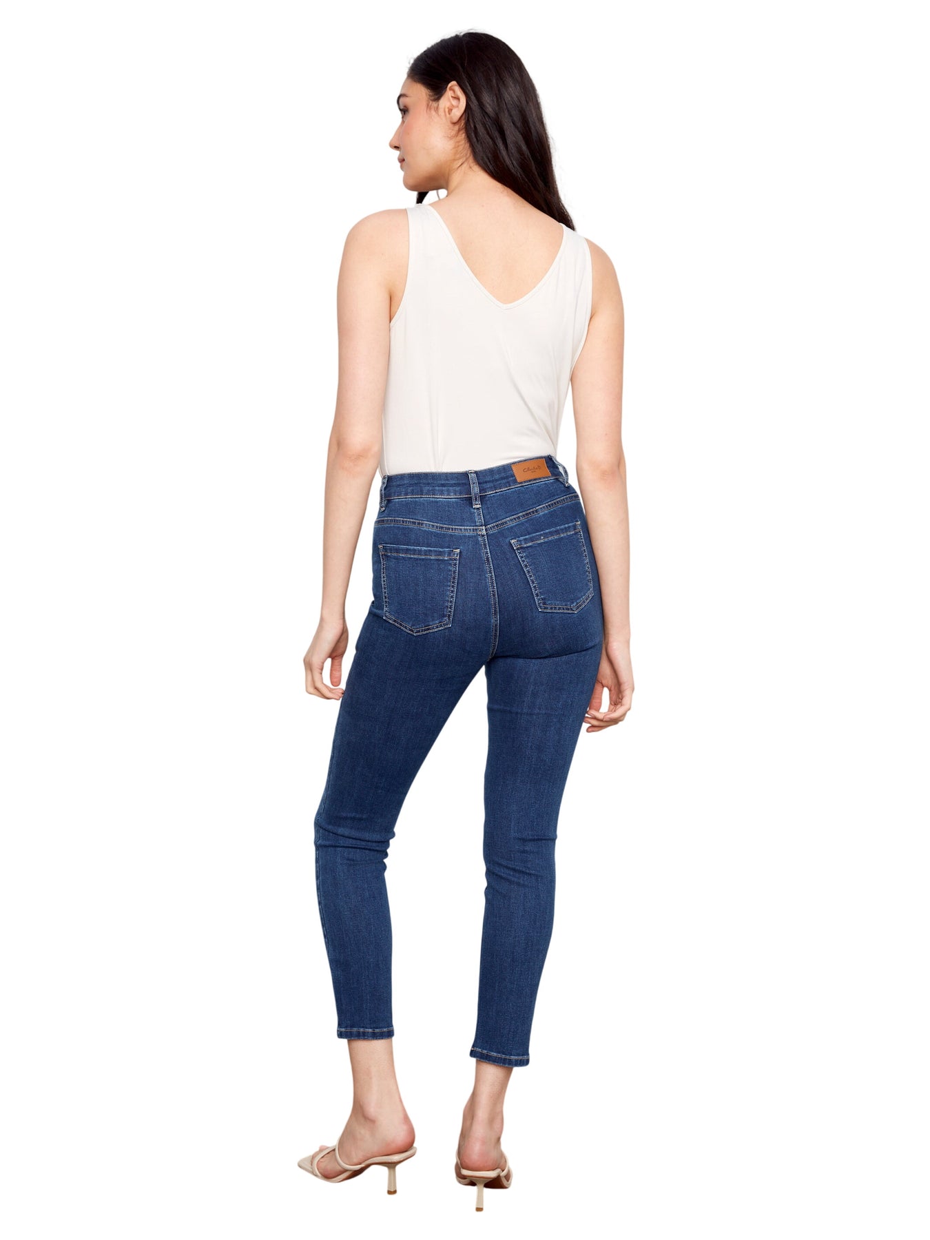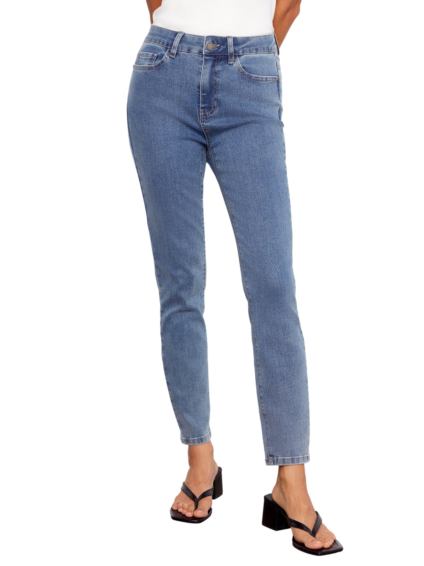 These slim leg jeans deliver a polished silhouette that hugs your curves in all the right ways. The mid-rise waist keeps you secure and comfortable, while the cropped ankle length lets your shoes take center stage. Built from premium denim that resists stretching and bending, they're engineered to move boldly with your day.