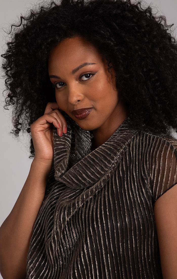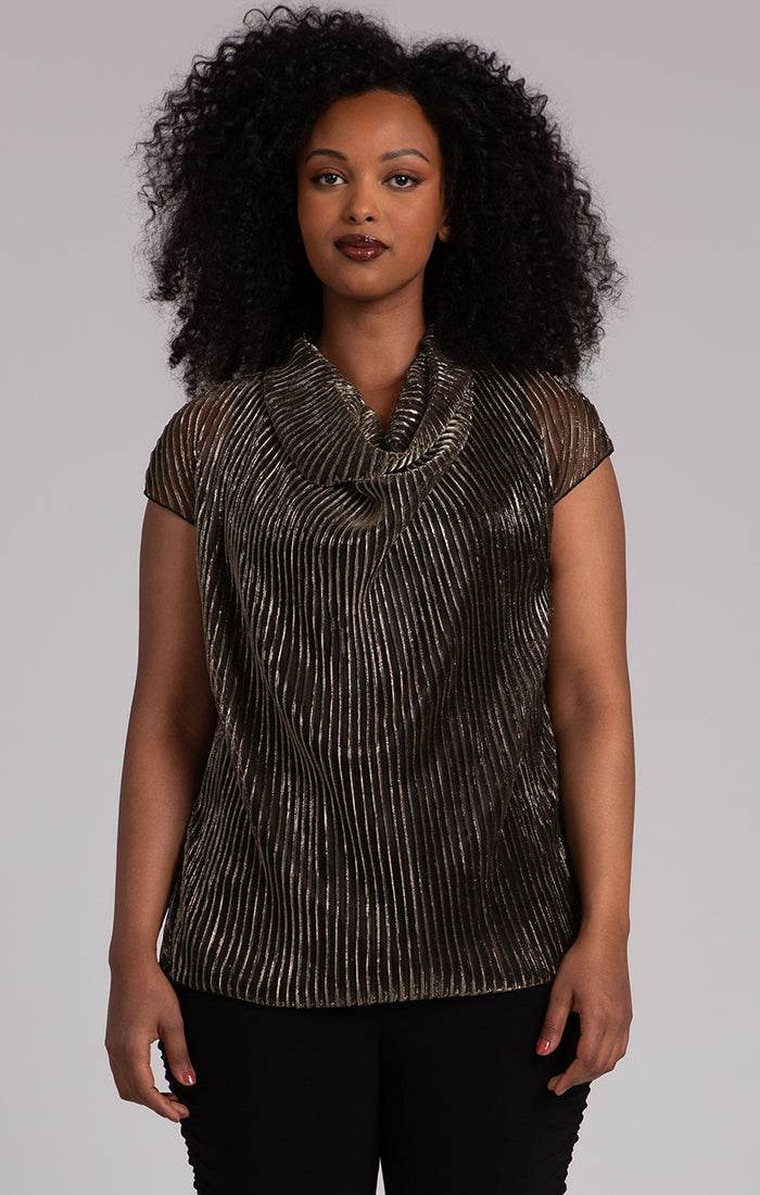 Draped Cowl Top, Pleated Mesh