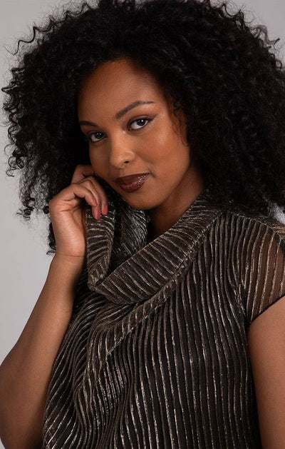 This elegant top has a stunning draped cowl design that adds a touch of sophistication to any outfit. Made with high-quality pleated mesh, this top is as breathable as it is stylish. Perfect for any occasion, it's a versatile piece that will quickly become a staple in your wardrobe.