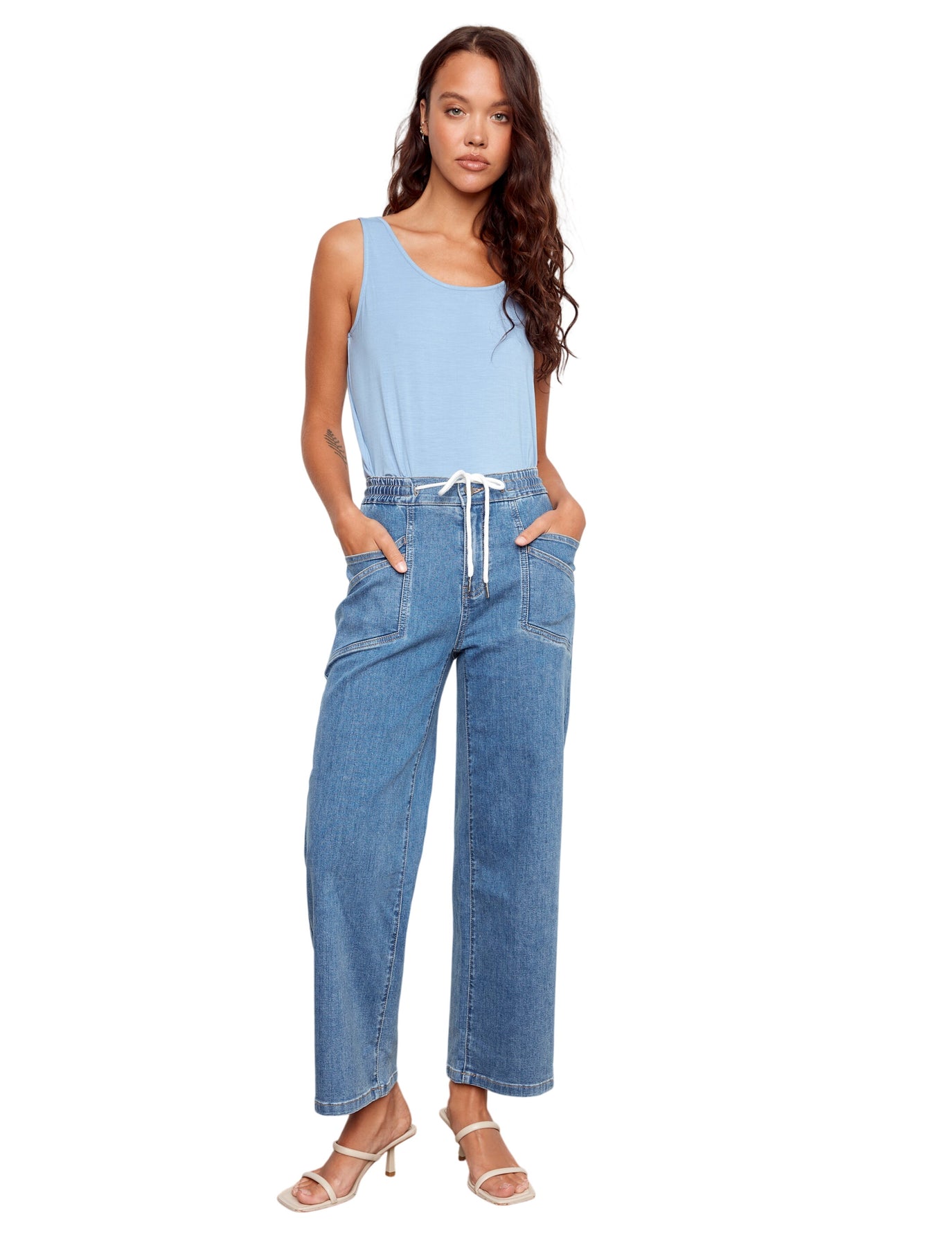 Drawstring Wide Leg Denim Pants Charlie B